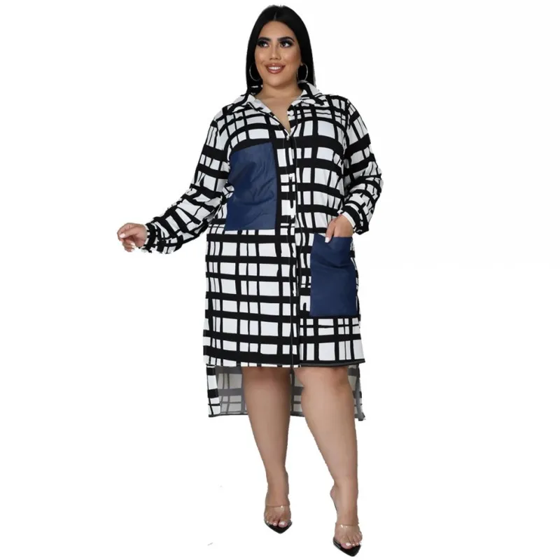 Новинка, женские свободные офисные платья-рубашки в шотландскую кле...