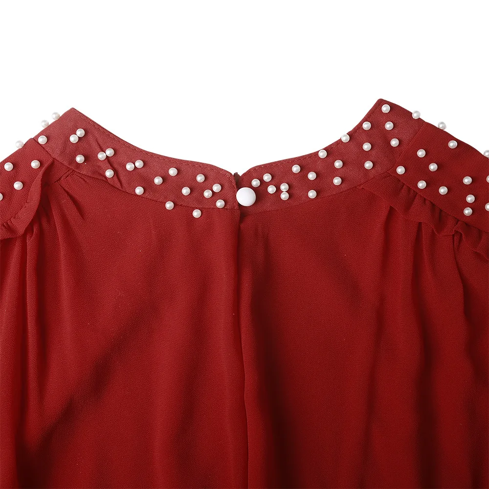 Женская блузка с расклешенным рукавом, V-образным вырезом и рюшами