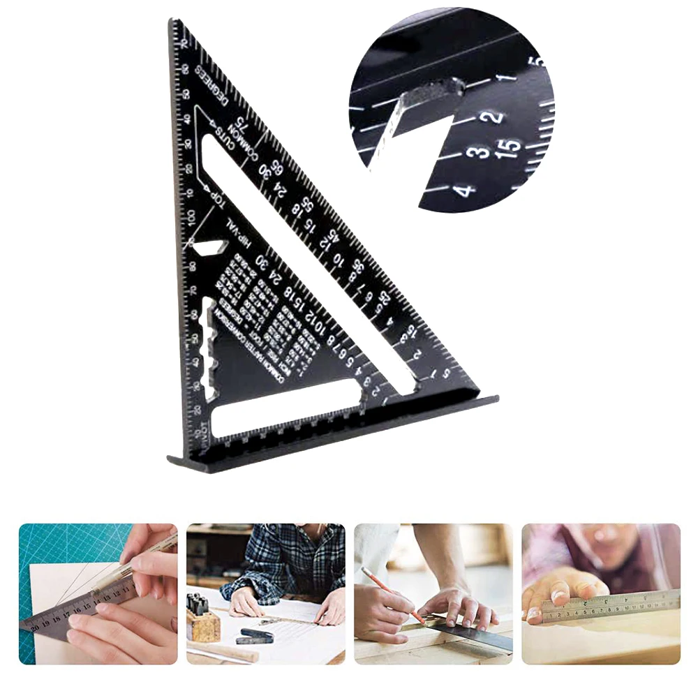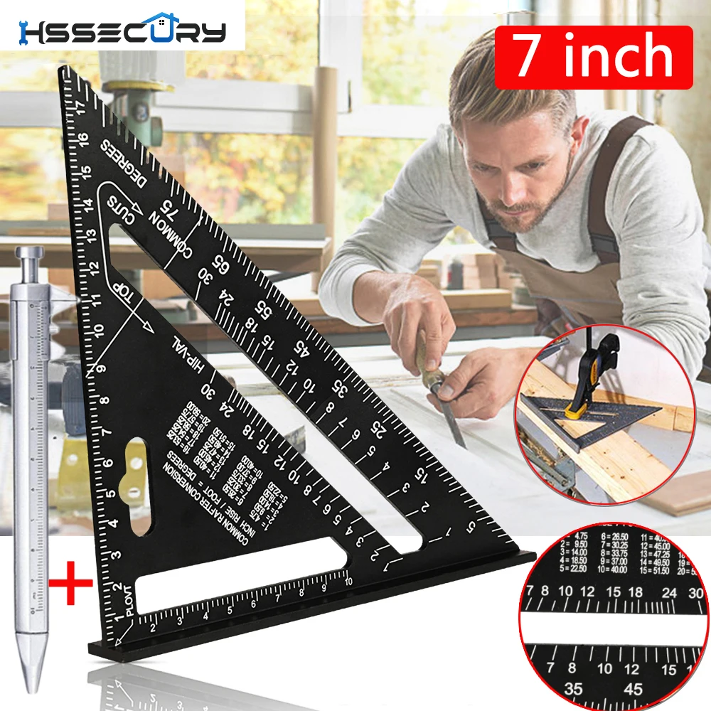 Линейка треугольная 7 дюймов, транспортир из алюминиевого сплава, метрическая, квадратная, для строительства, деревообработки