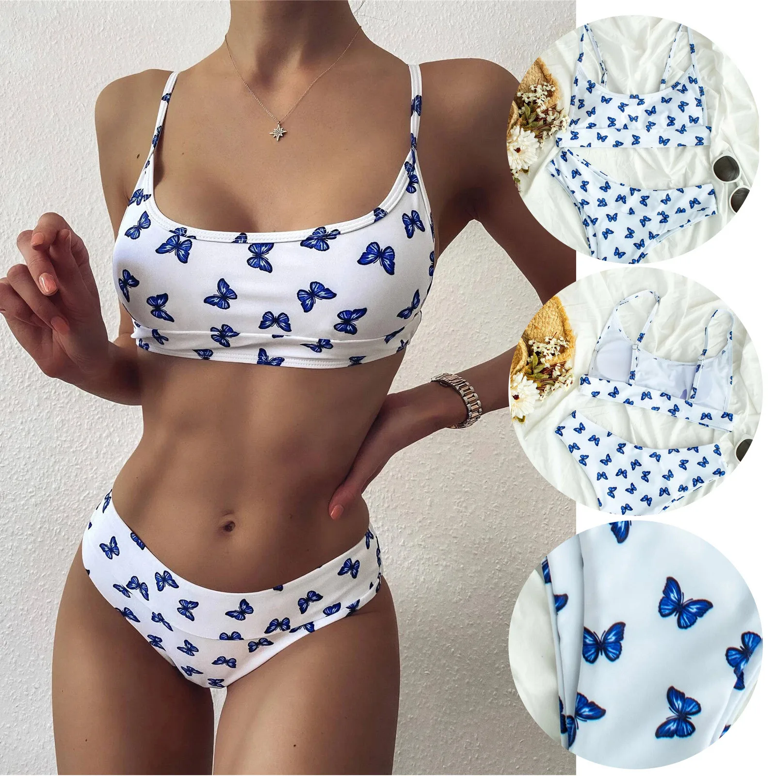 Купальник-бикини с принтом бабочек, женский купальник 2021, комплек...