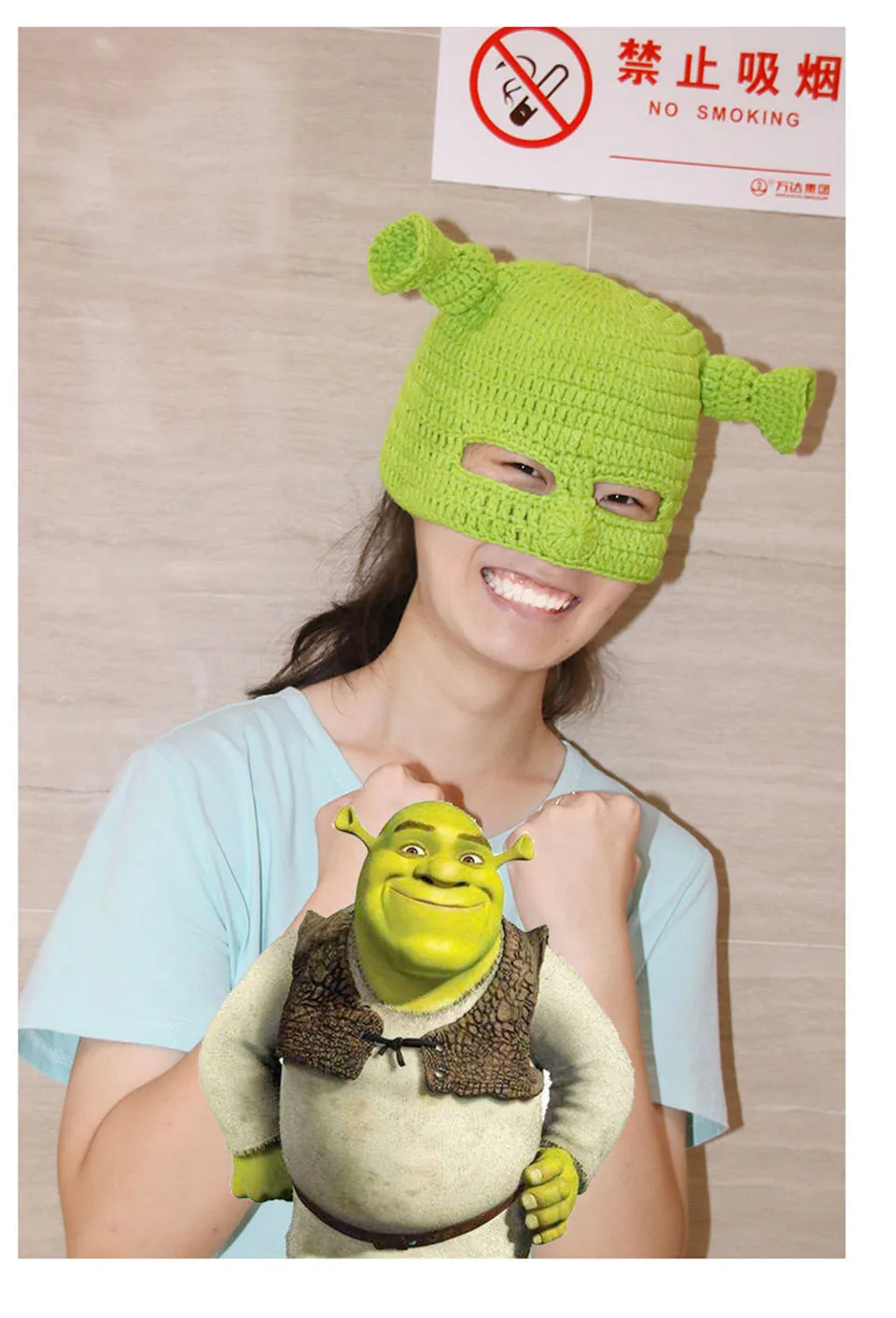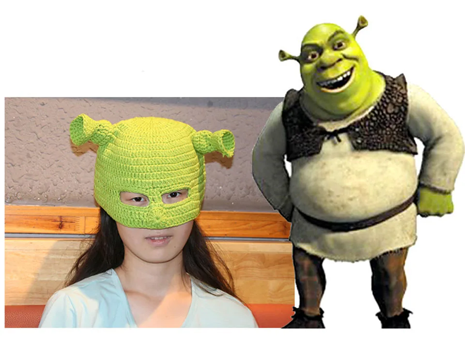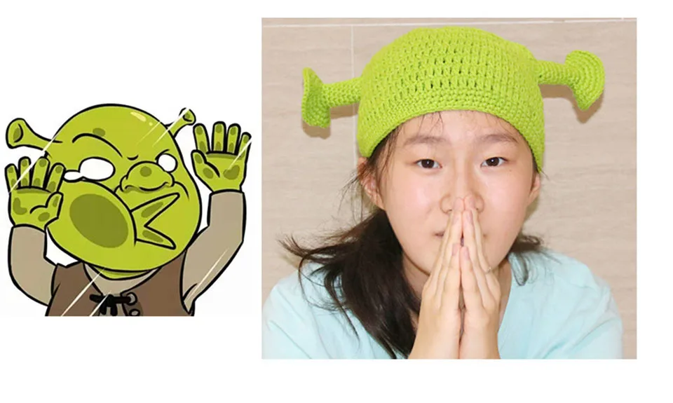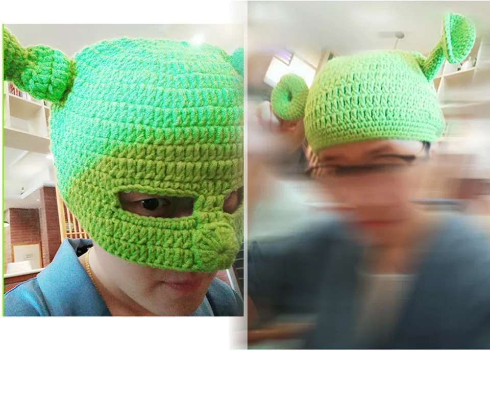 Женская вязаная зеленая шляпа со шреком, забавная мультяшная песчаная скульптура, подарок, креативная шляпа с капюшоном ручной работы