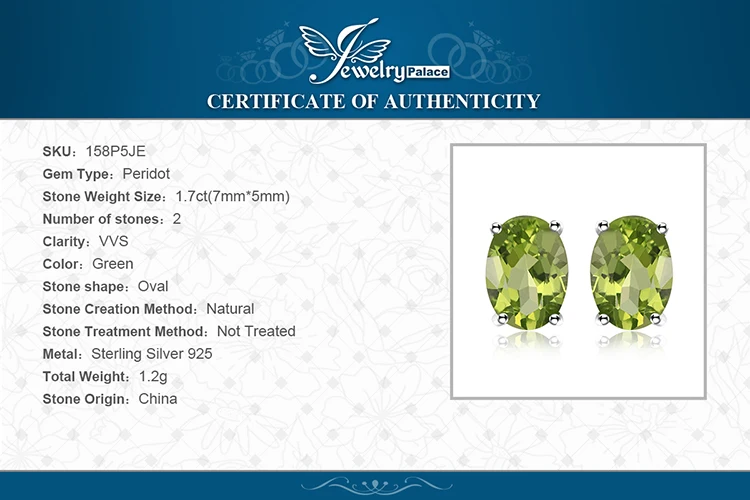 Женские серьги-гвоздики из серебра 925 пробы с натуральным хризолитом