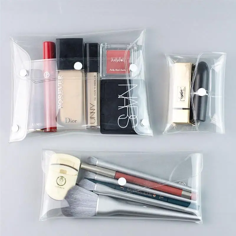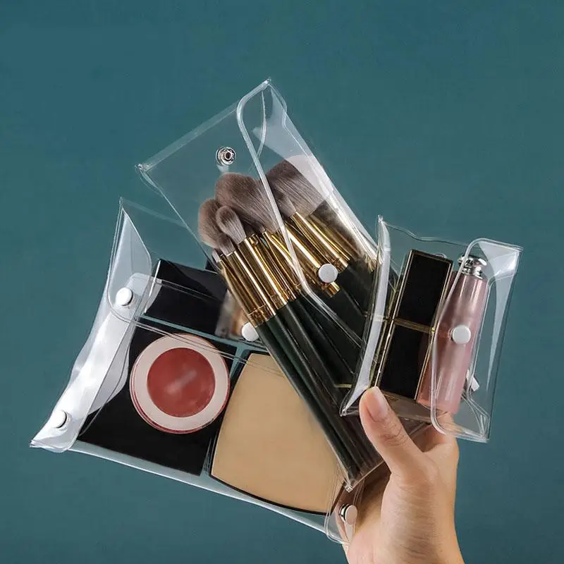 Прозрачная косметичка Ins 12 шт., портативные дорожные мешки для косметики, чехол с кнопками для хранения кистей