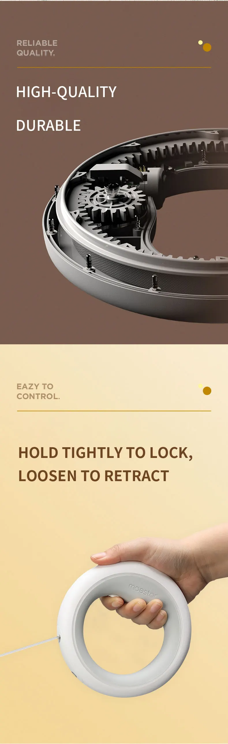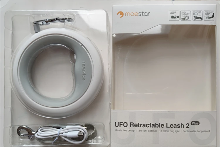 Умный выдвижной поводок для собак Moestar в виде НЛО 2 Plus, светодиодный светильник с подзарядкой через USB, противоскользящая ручка, блокировка тормоза одной рукой и паузы
