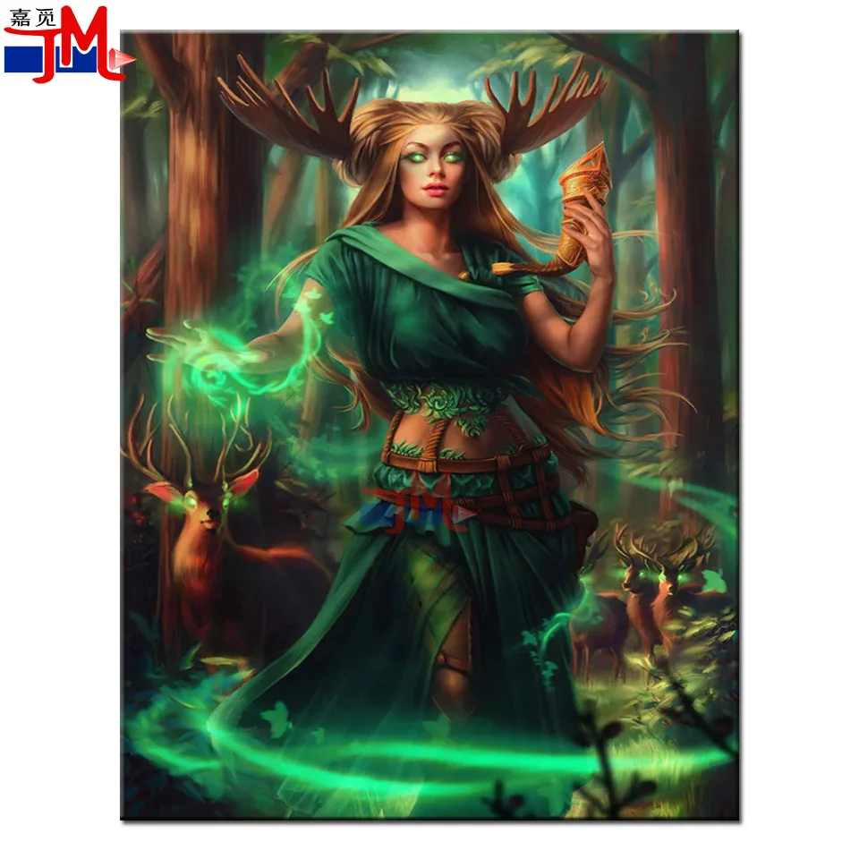 Олень волшебная фея Алмазная картина фантазия женщина Алмазная вышивка продажа 5d Сделай Сам полный квадрат круглые дрели ведьма мозаика, животное подарок