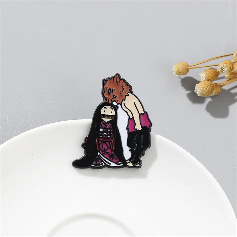 Популярное японское аниме Demon Slayer Blade Mouth Hira Inosuke and Kamen Nidouzi Мультяшные Металлические Ювелирные изделия Подарки