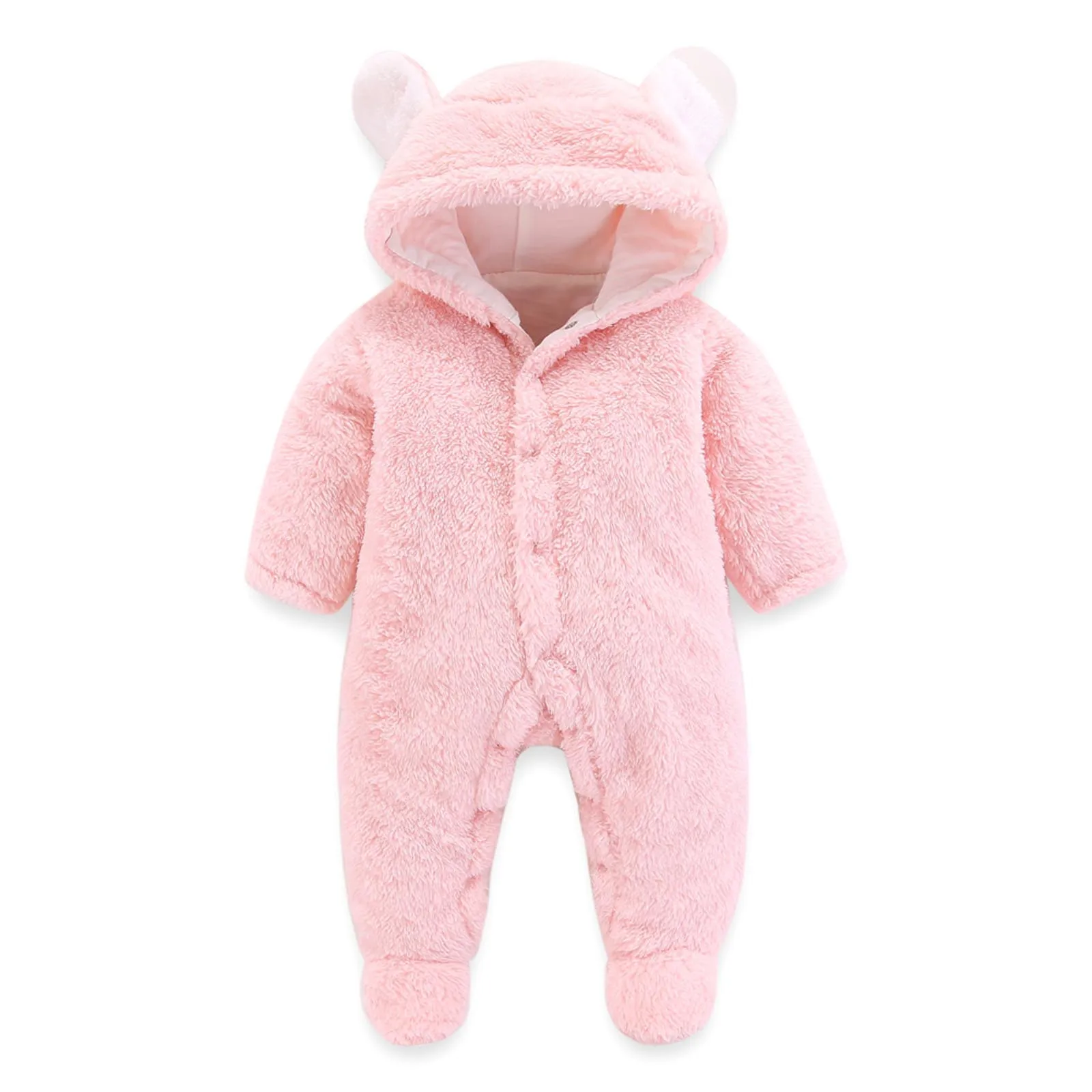 Комбинезон для новорожденных, зимняя теплая одежда для маленьких девочек, комбинезон с животными для мальчиков, комбинезон с длинным рукавом и капюшоном, милый детский костюм