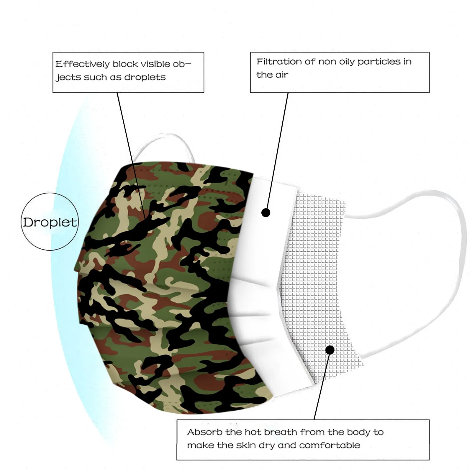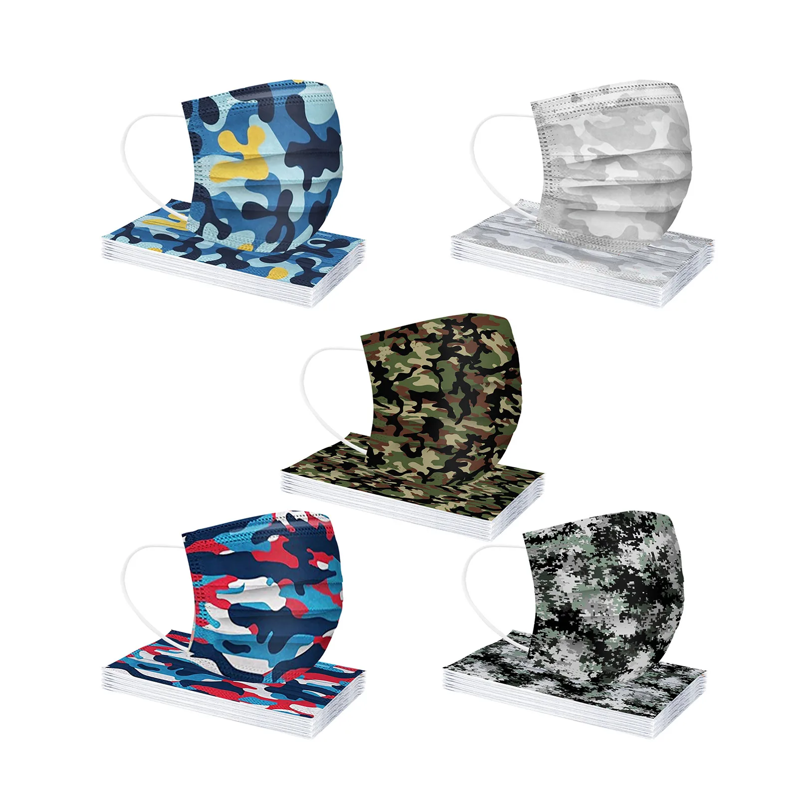 Камуфляж одноразовая маска для лица, способный преодолевать Броды для взрослых 3 слоя дышащая маска для лица для взрослых с капюшоном с камуфляжным рисунком маска