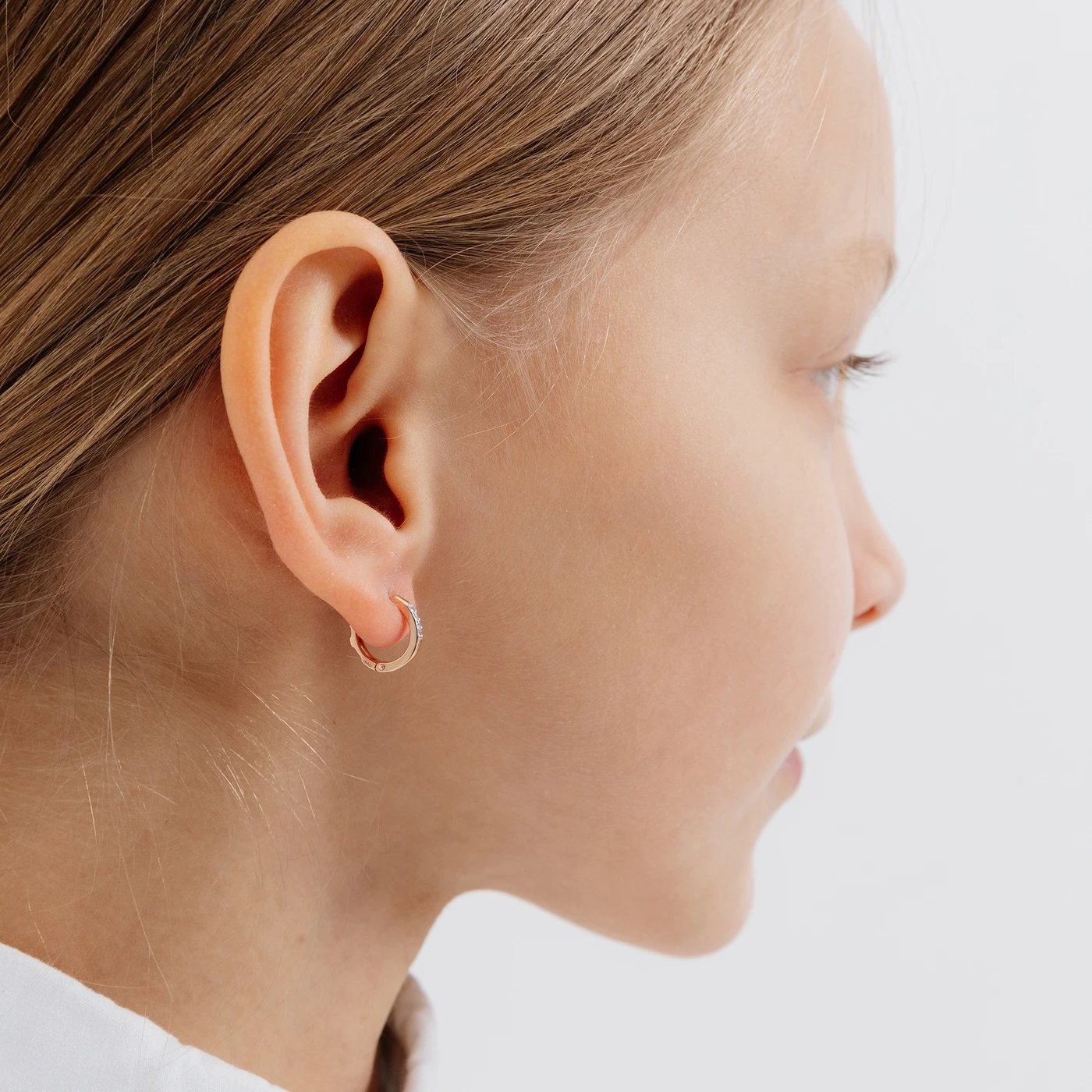 Серьги кольца (конго) из розового золота c бриллиантами АЛЬКОР. Быстрая доставка с ювелирной фабрики в России. Детские серьги АЛЬКОР максимально безопасны и гипоаллергенны. Замок в серьгах не вызывает дискомфорта и адаптирован специально для детей. Каждое наше украшение - это маленький шедевр ювелирного искусства, инкрустированный природными бриллиантами премиального качества и контролируемого происхождения. Качество - наш главный приоритет! Поэтому украшения АЛЬКОР много лет подряд становятся лауреатом конкурса "100 лучших товаров России". Вставка: 8 Бриллиантов кр 17 200-400 2/3А, карат. вес: 0,033. Высота изделия: 10,5 мм. Ширина изделия: 10,5 мм.