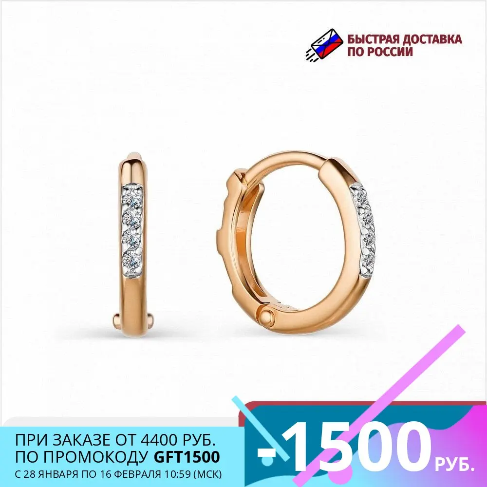 Серьги кольца (конго) из розового золота c бриллиантами АЛЬКОР. Быстрая доставка с ювелирной фабрики в России