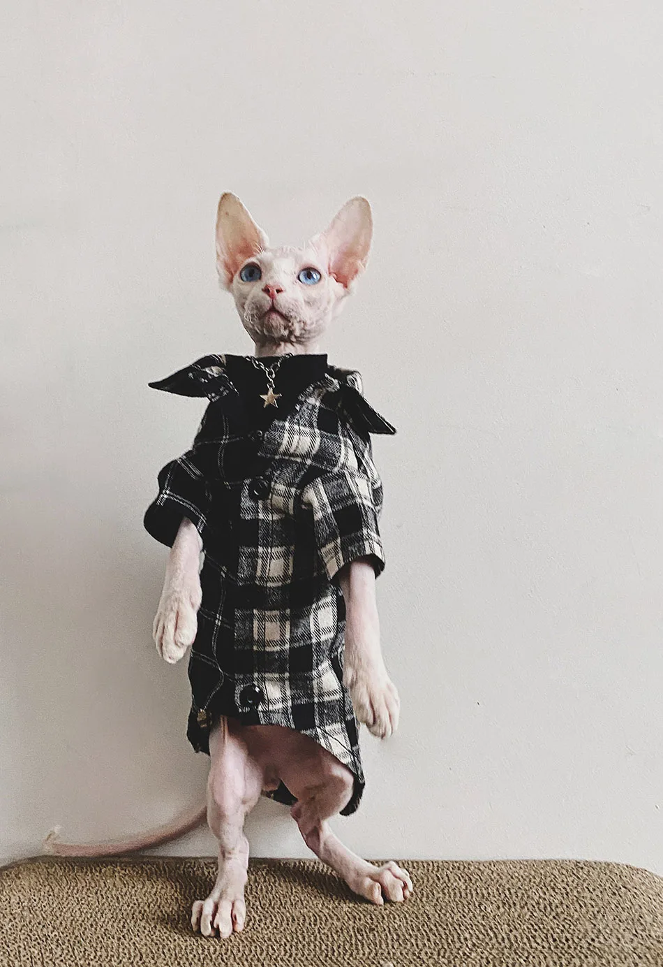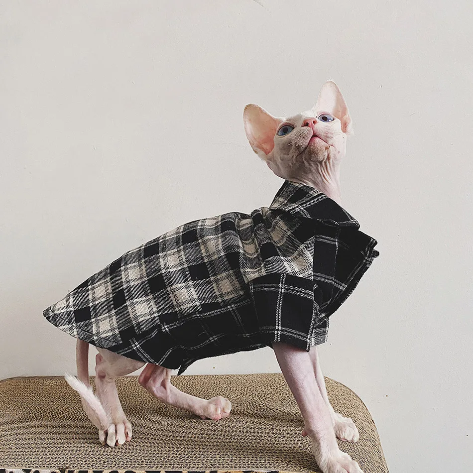 Одежда для кошек сфинкса, клетчатая простроченная рубашка, одежда для котят Сфинкса на осень и зиму, модный дизайн, пальто для кошек Сфинкса