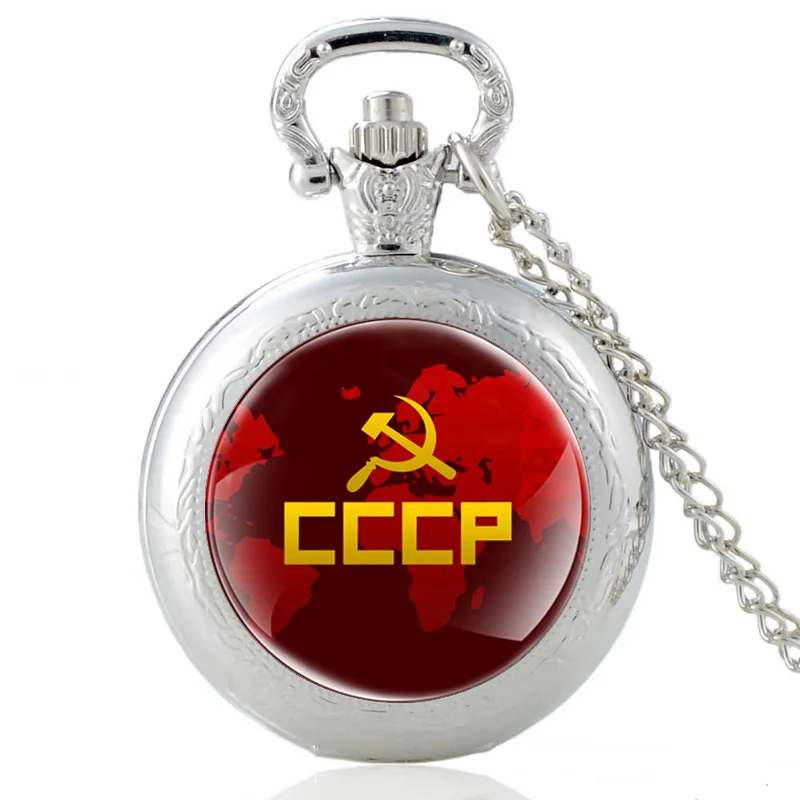 Старинный Союз Советских Социалистических Республик, стеклянный кабошон, кварцевые карманные часы, винтажные мужские и женские часы с подвеской и ожерельем, подарки