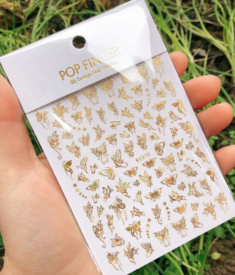 Голографические 3D наклейки для ногтей в виде бабочек, клейкие слайдеры, Красочные золотые переводные наклейки для ногтей сделай сам, фольга, обертывания, украшения