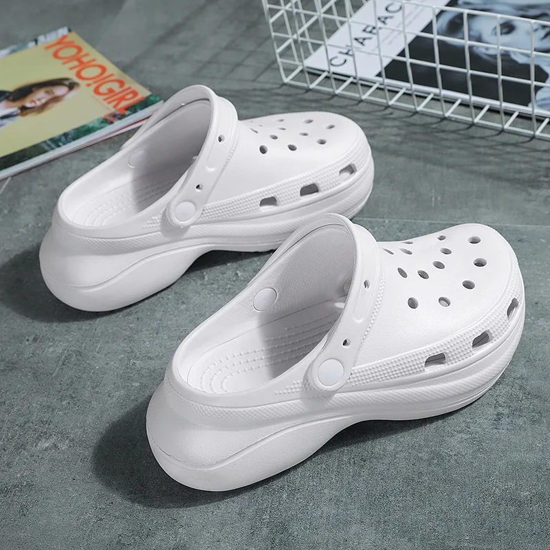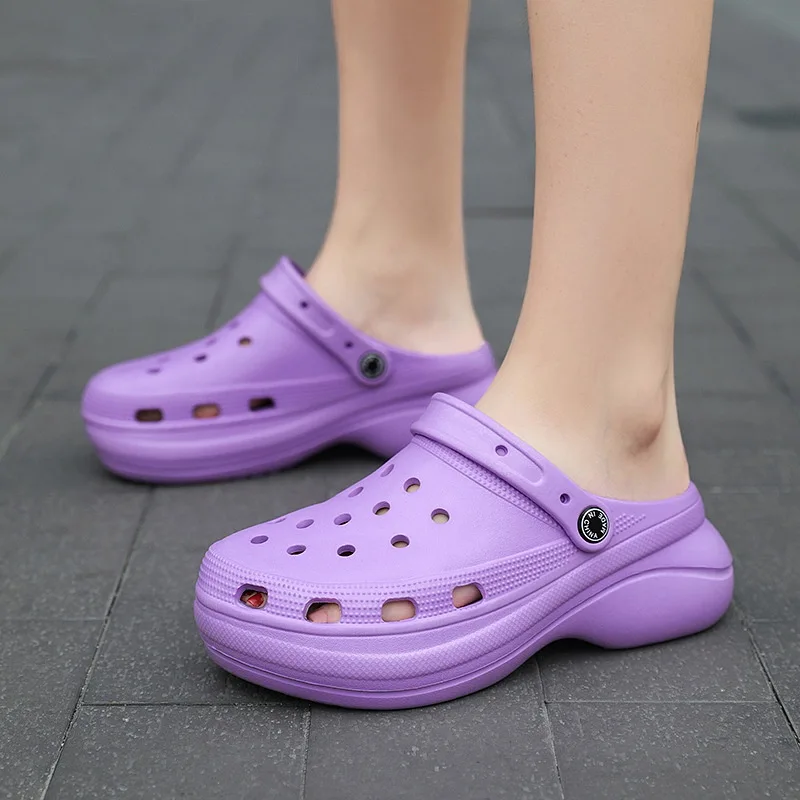 Сандалии женские на платформе, Кроксы на толстой подошве, Нескользящие, уличные тапочки для дома, пляжа, сада, летняя обувь