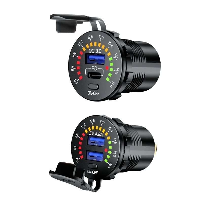 12 В Быстрая зарядка 3,0 USB SUV автомобильное зарядное устройство водонепроницаемое 18 Вт Тип C PD розетка быстрое зарядное устройство светодиодный вольтметром вкл. ВЫКЛ. Выключатель питания
