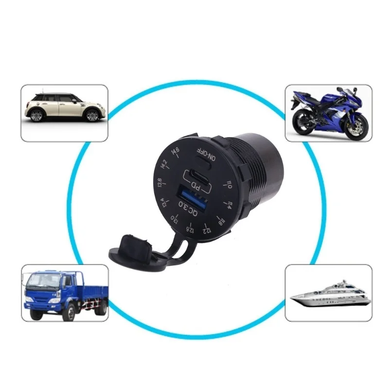 Водонепроницаемый Тип C PD QC3.0 USB 12V автомобильный адаптер для ...