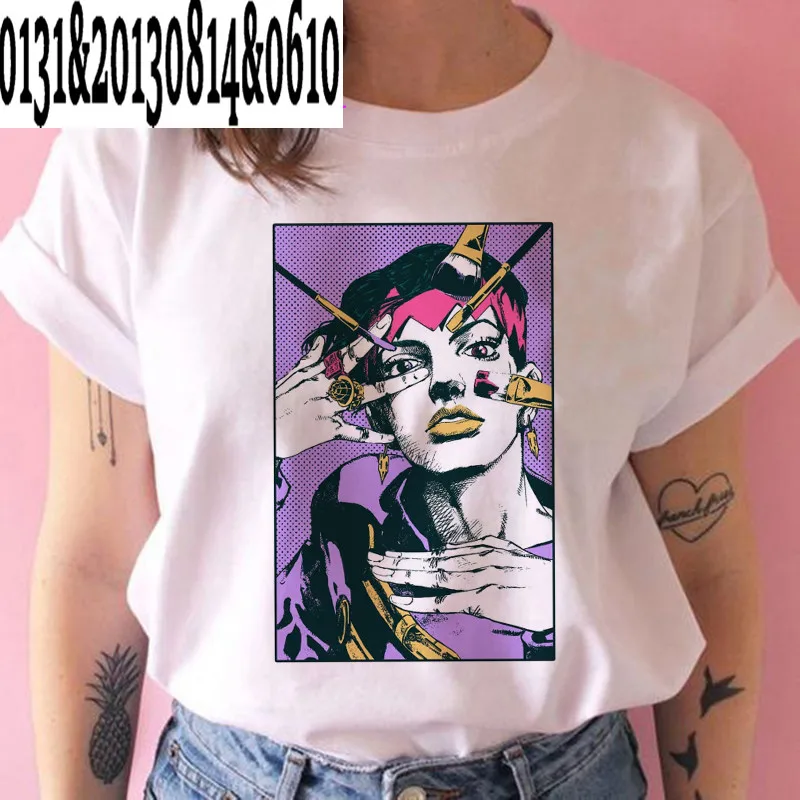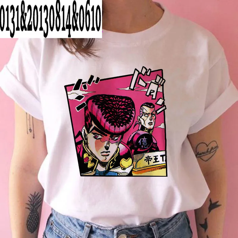 Женские футболки с принтом невероятных приключений Джоджо, розовые футболки для женщин, повседневная женская футболка, винтажные топы с круглым вырезом, футболки
