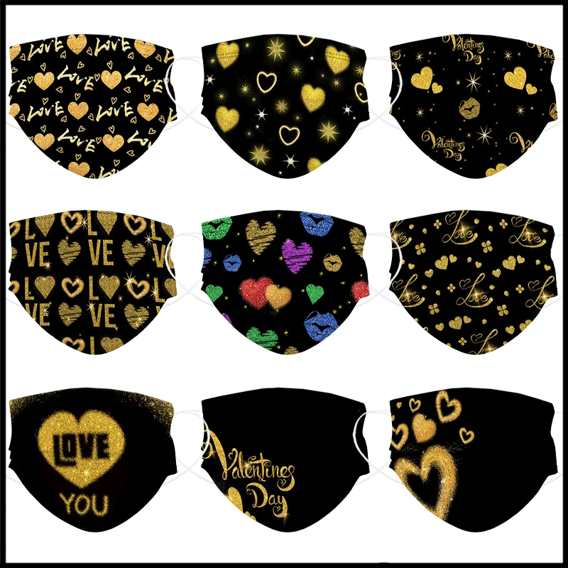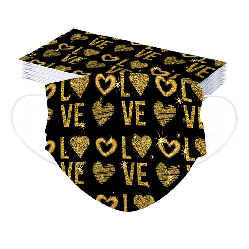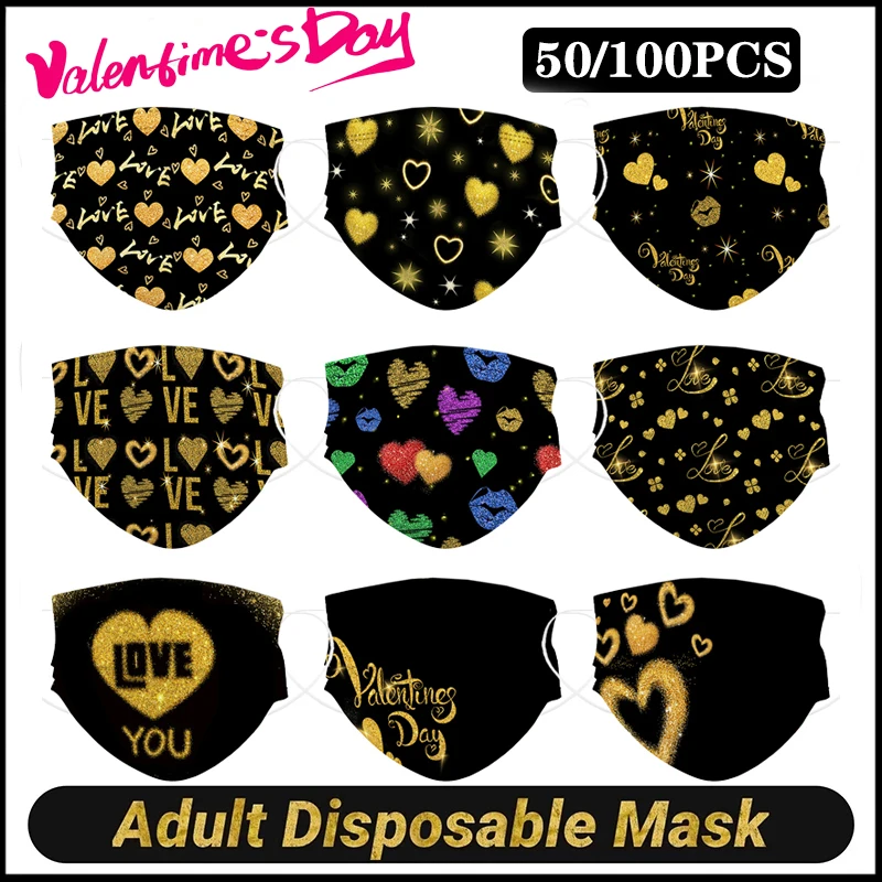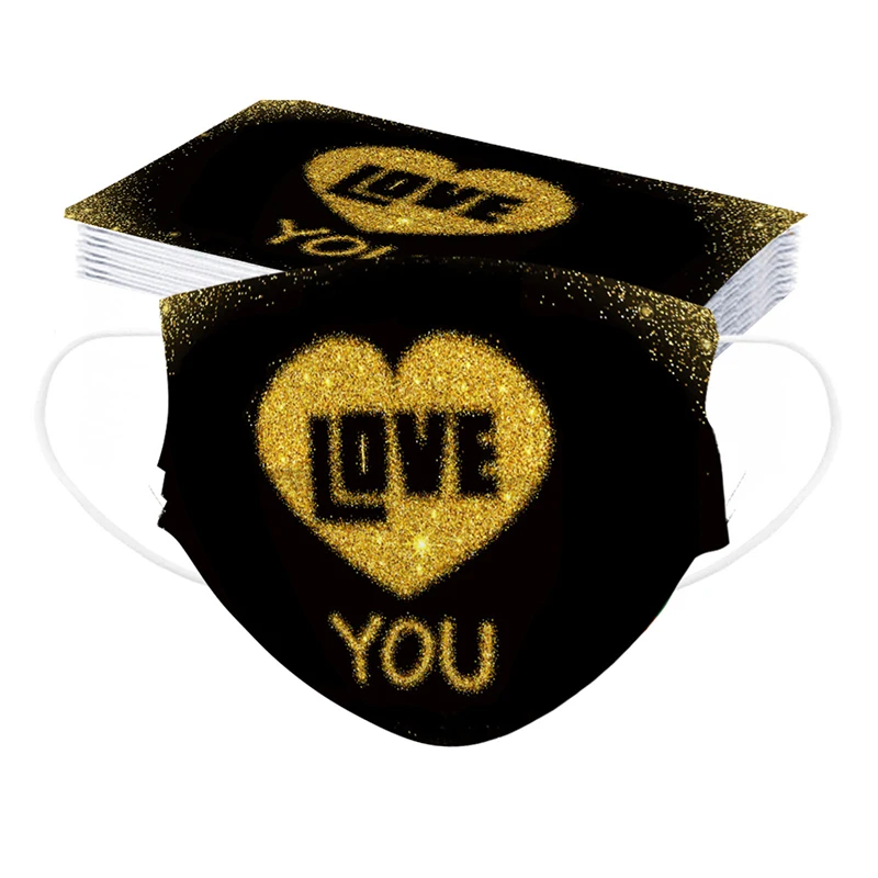 Маска одноразовая трехслойная для женщин и взрослых, пылезащитная с фильтром мелтблауна и надписью Love, маска одноразовая для лица и рта, День святого Валентина