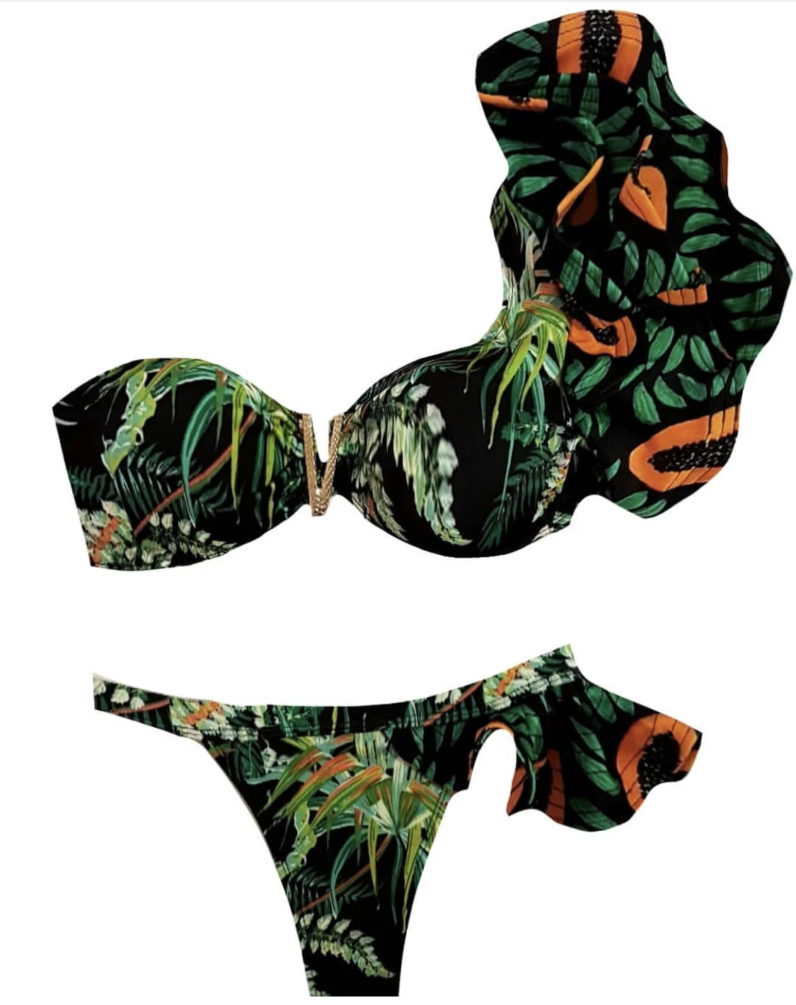 Купальник на одно плечо, бикини с принтом, бразильский комплект бик...