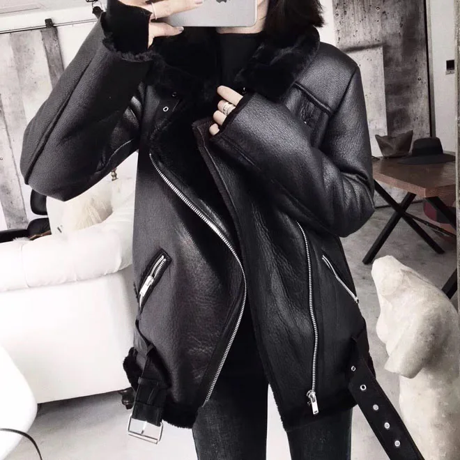 Новинка 2022, женская зимняя куртка, утепленная шуба из искусственной овечьей шерсти, Женская авиаторская кожаная куртка, Женская куртка