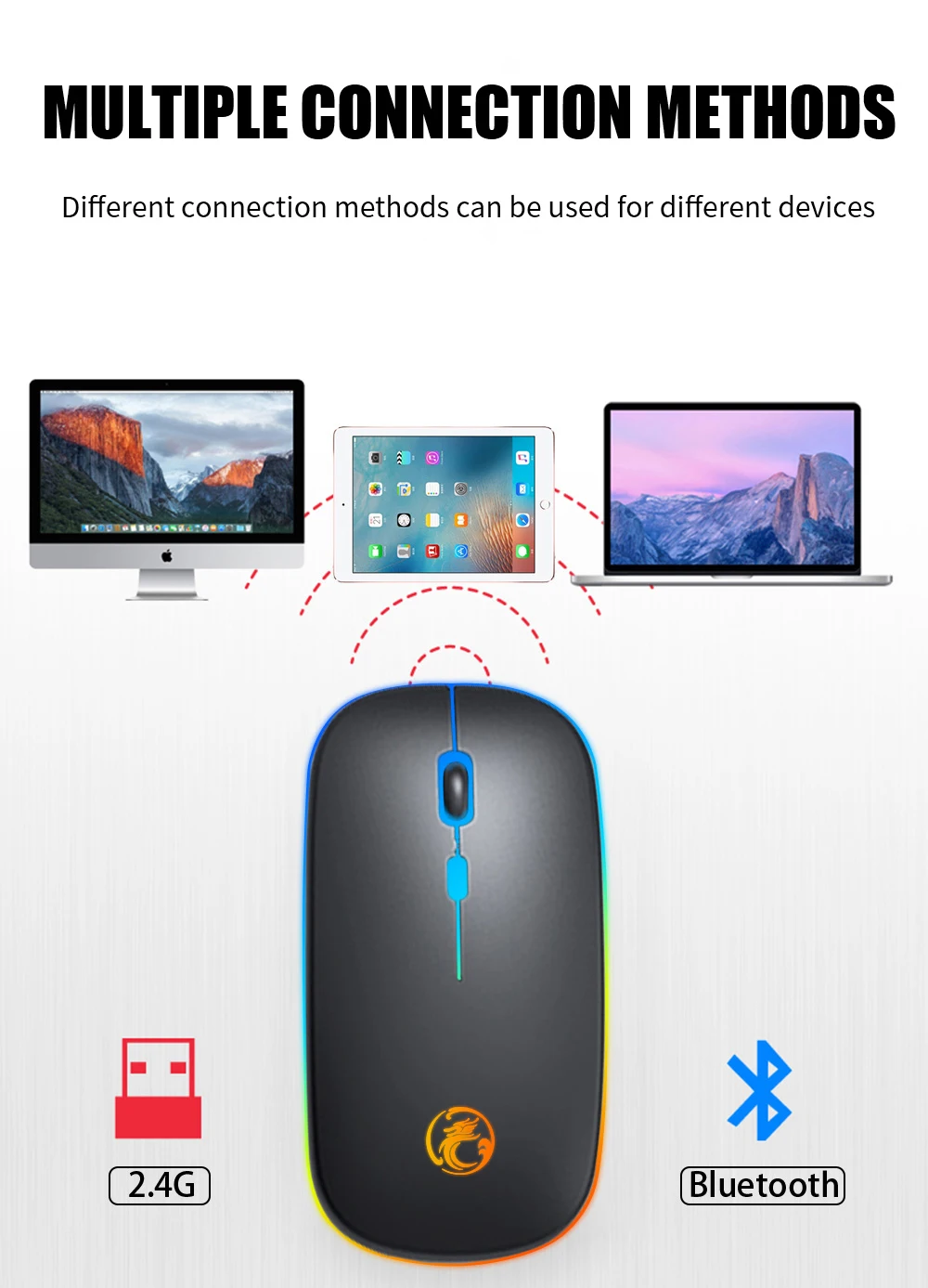 Bluetooth-мышь компьютерная беспроводная Двухрежимная с подсветкой и зарядкой