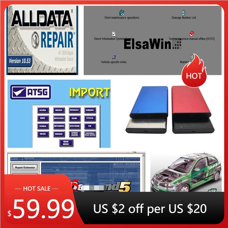 Alldata 2021 горячая Распродажа программное обеспечение для ремонта данных автомобиля Atsg яркая мастерская данных ElsaWin 6,0 ТБ жесткий диск все данные