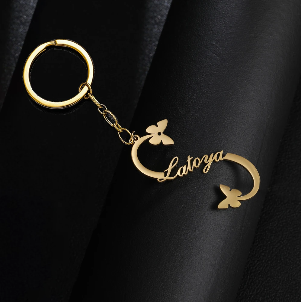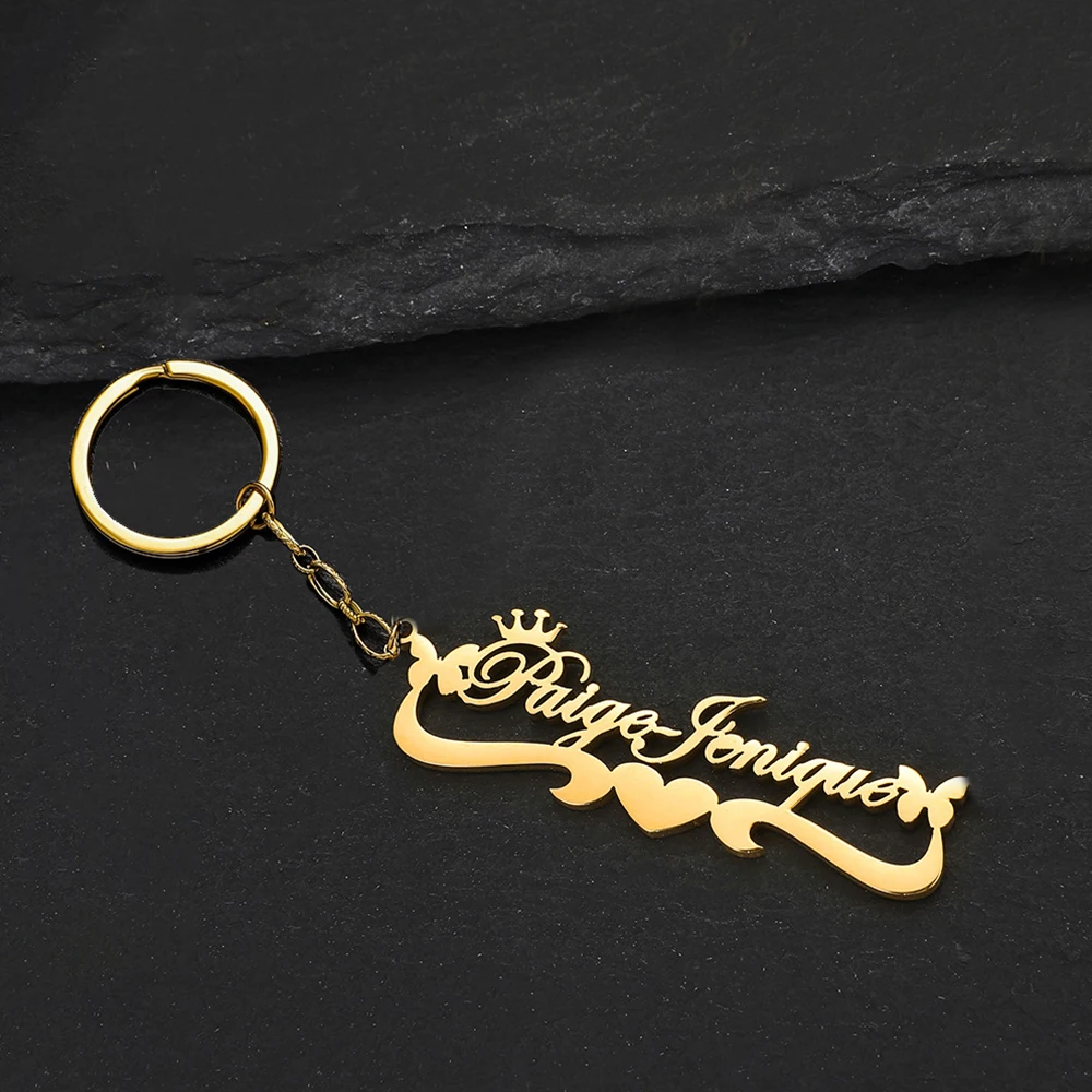 Брелок с именем на заказ с короной персонализированный Золотой инди...