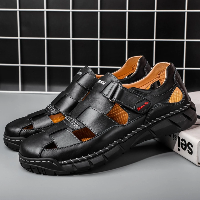 Мужские мужские уличные сандалии кожаные пляжные сандалии, мягкая м...