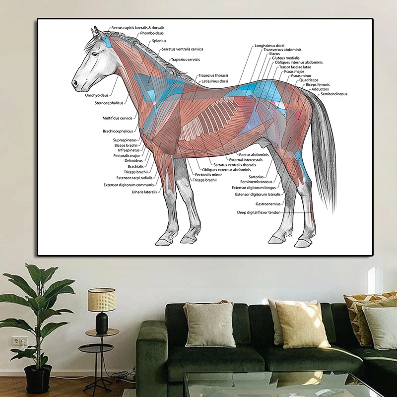 Человеческое животное, лошадь, искусство, медицинская Настенная картина, мышцы, скелет, холст, печать, живопись для декора больничной клиники