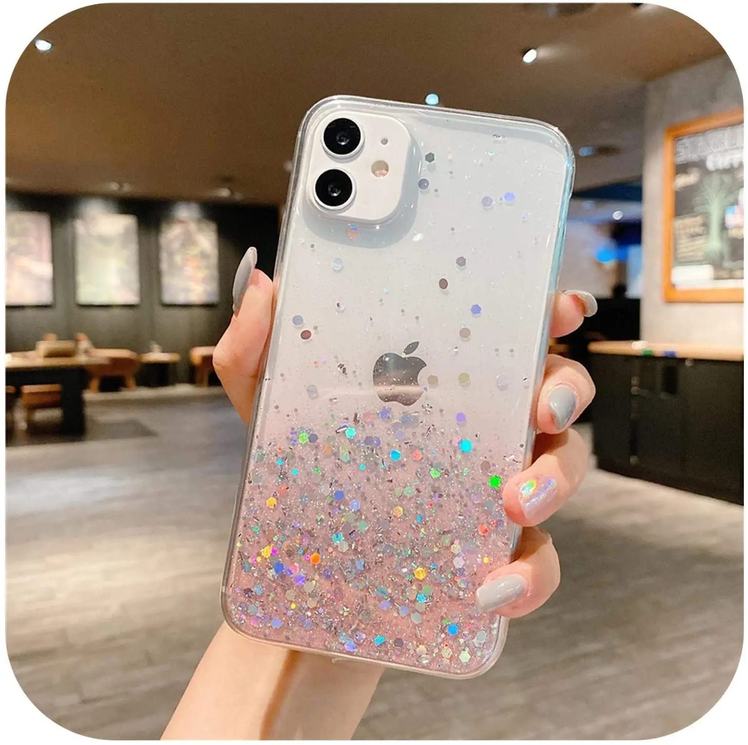Блестящий Мягкий Прозрачный чехол для iPhone 13 12 Pro 11 Pro Max iPhone SE 2020 XS Max XR 6 6s 7 8 Plus, чехол для женщин и девушек