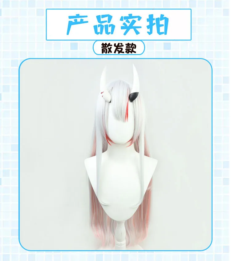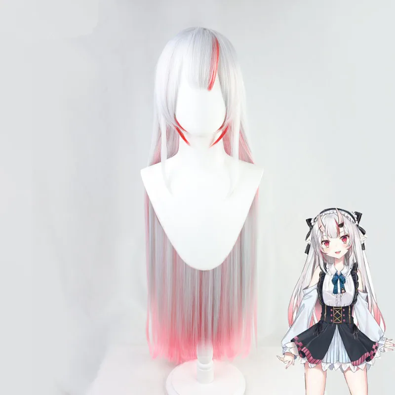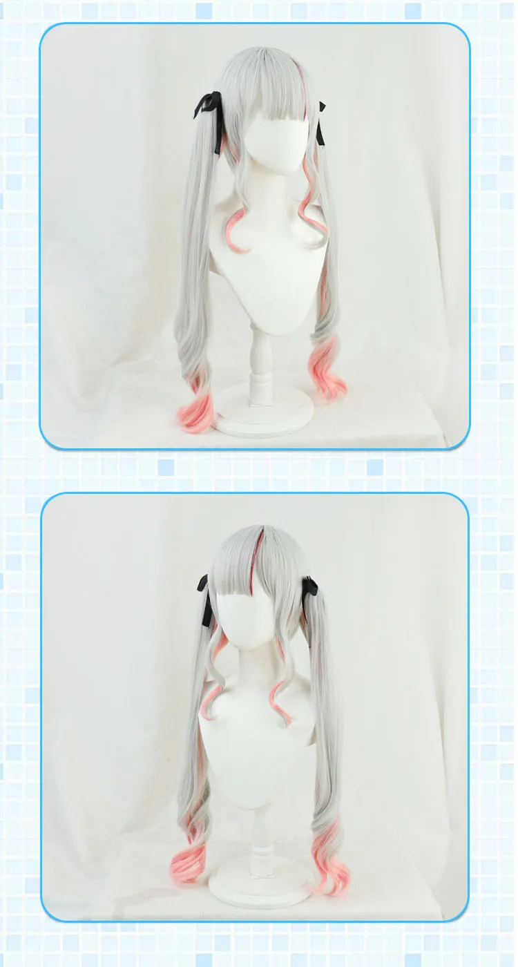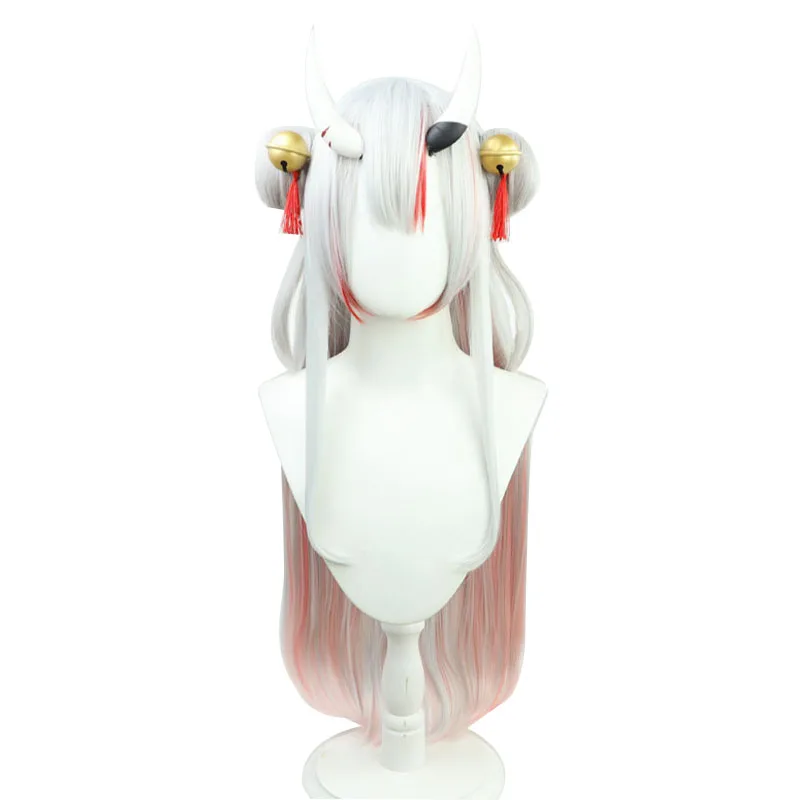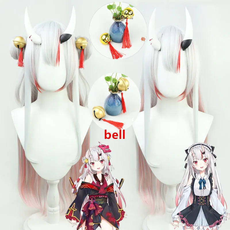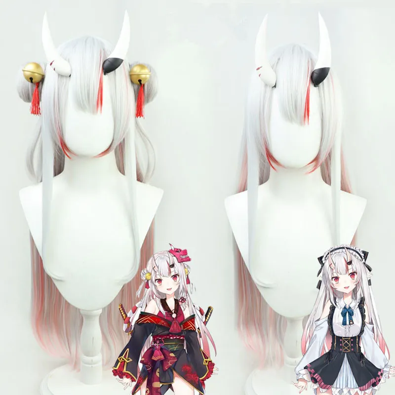 Парик VTuber Nakiri Ayame, булочки, рога, колокольчики, колокольчики Hololive, реквизит для косплея, серый, розовый, длинный, прямой, Youtuber, девушки Holo, без граффити, волосы