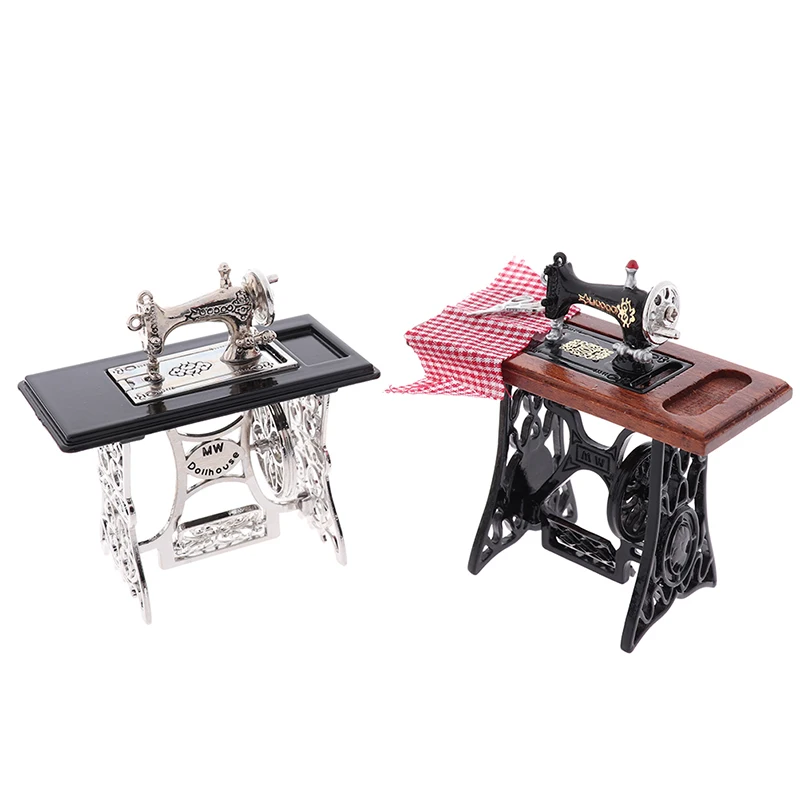 Миниатюрная мебель для детей, декор кукольного домика, деревянная швейная машина с ниткой, ножницами, аксессуары для кукольного домика, игрушки для девочек