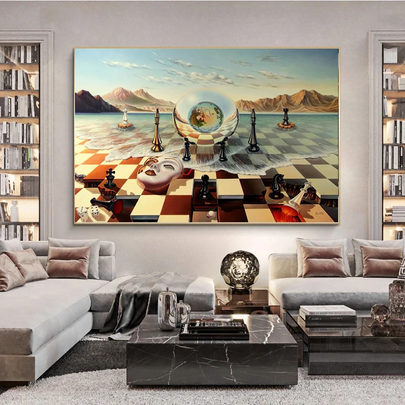 Сальвадор Дали сюрреалистичная Шахматная маска на море Абстрактная Картина на холсте плакат и печать Настенная картина для гостиной домашний декор