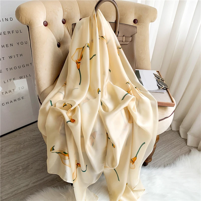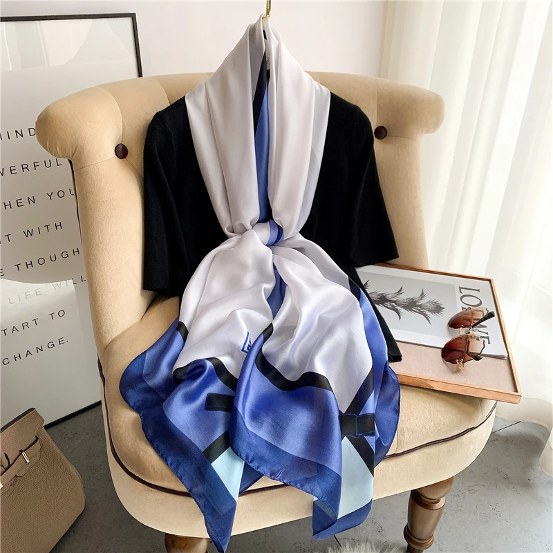 Новый Шелковый атласный шарф с принтом в полоску шаль большой 180*90 см зимний весенний теплый пашминовый платок хиджаб шарфы на голову Echarpe 2022