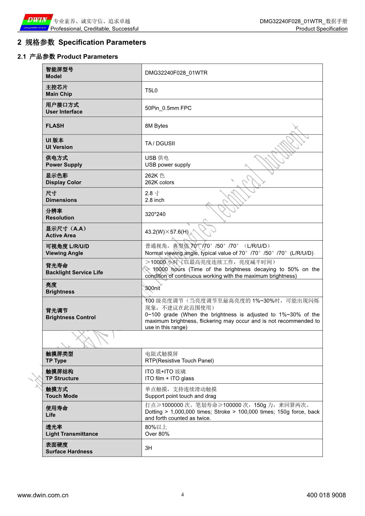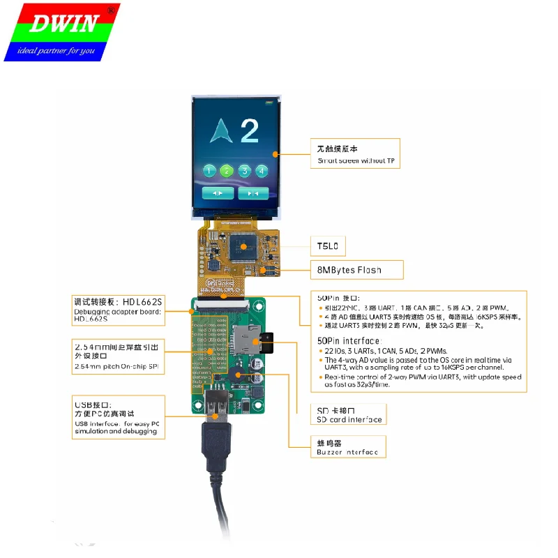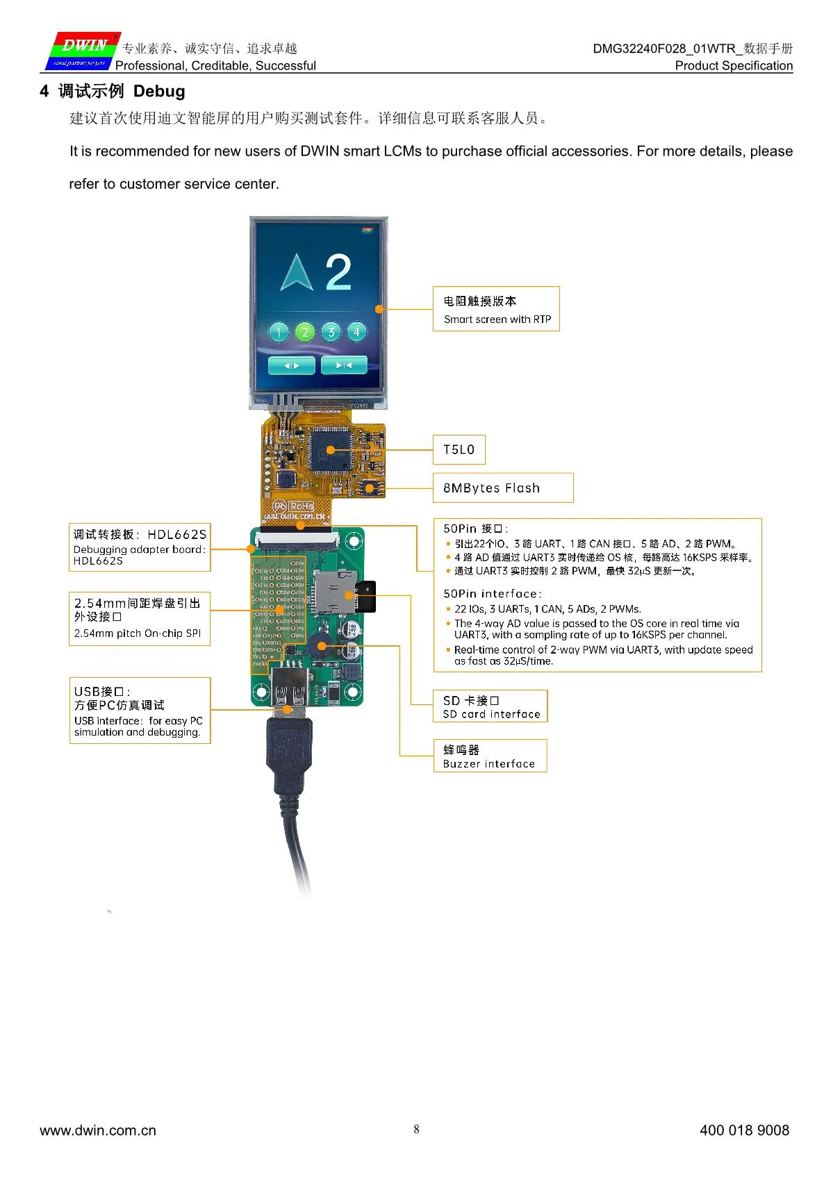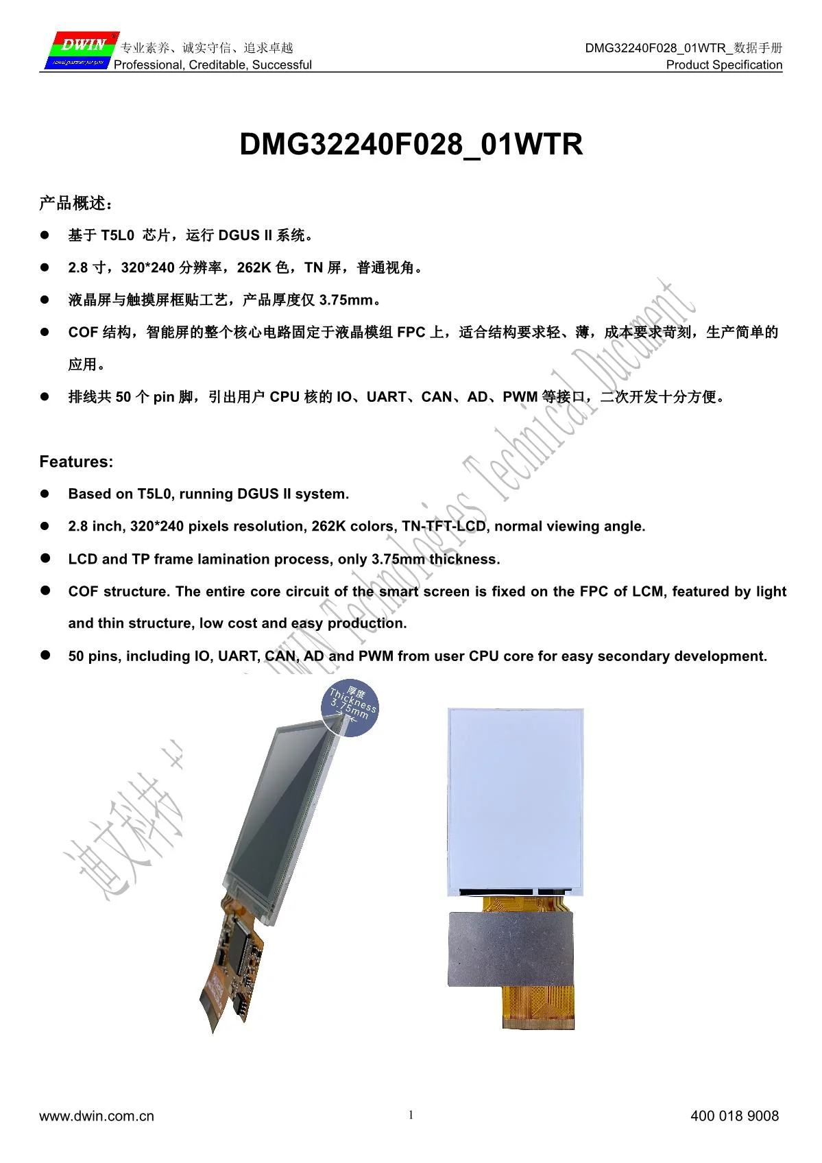 DWIN 2,8 дюймов COF структура 320*240 Разрешение IPS-TFT-LCD Smart LCMs UART порт резистивная сенсорная панель DMG32240F028_01W
