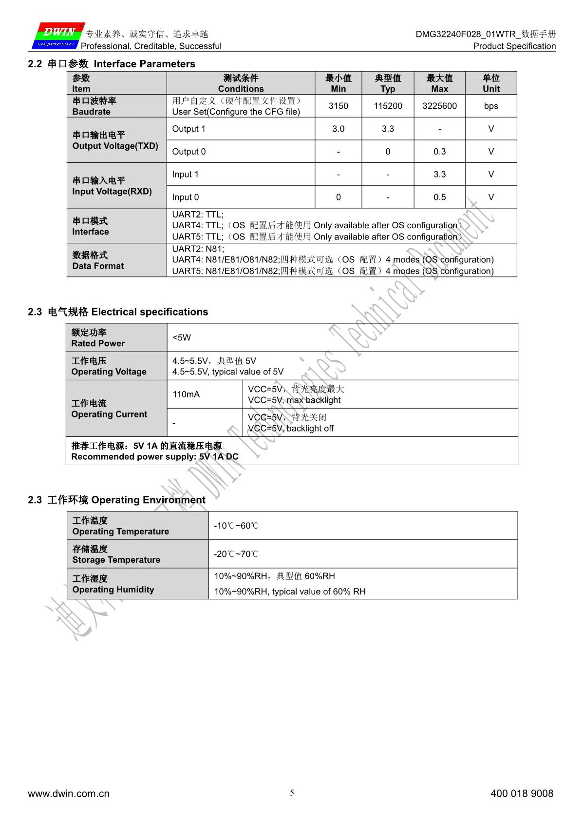 Operating Voltage:4.5~5.5V, typical value of 5V