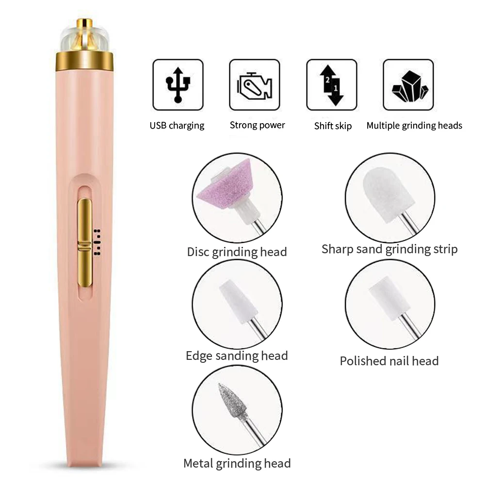 Электрическая шлифовальная машинка для ногтей, шлифовальная машинка для ногтей с подсветкой, портативная электрическая мини-ручка для маникюра, инструменты, машинка для маникюра, набор