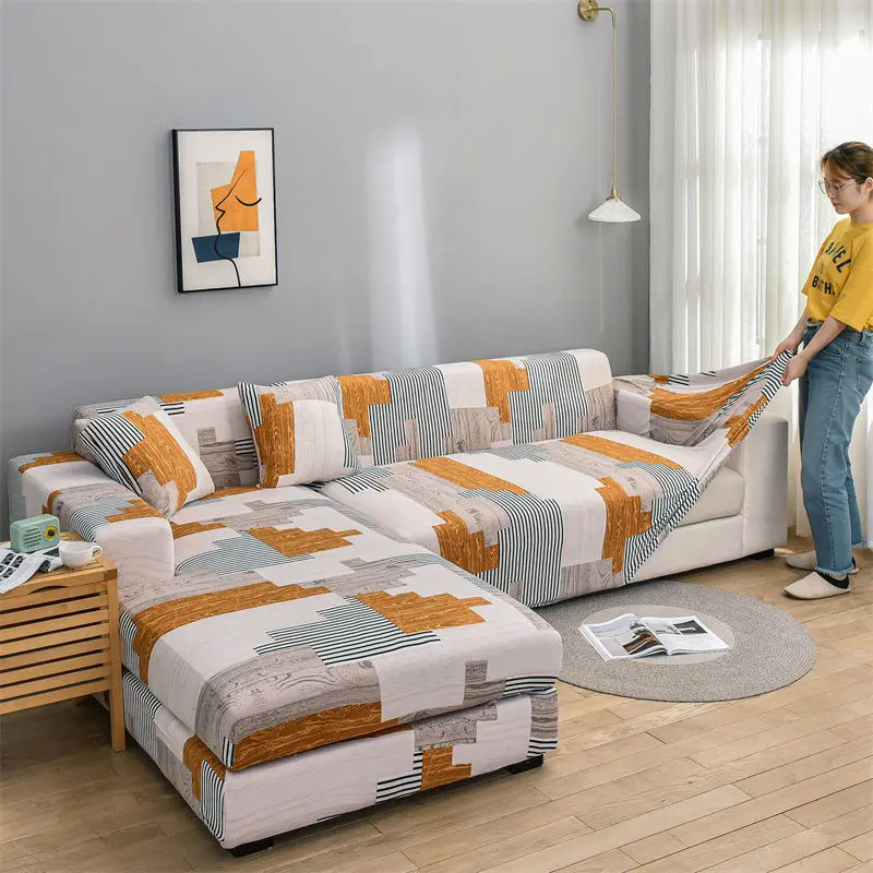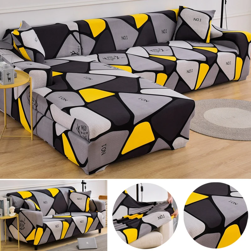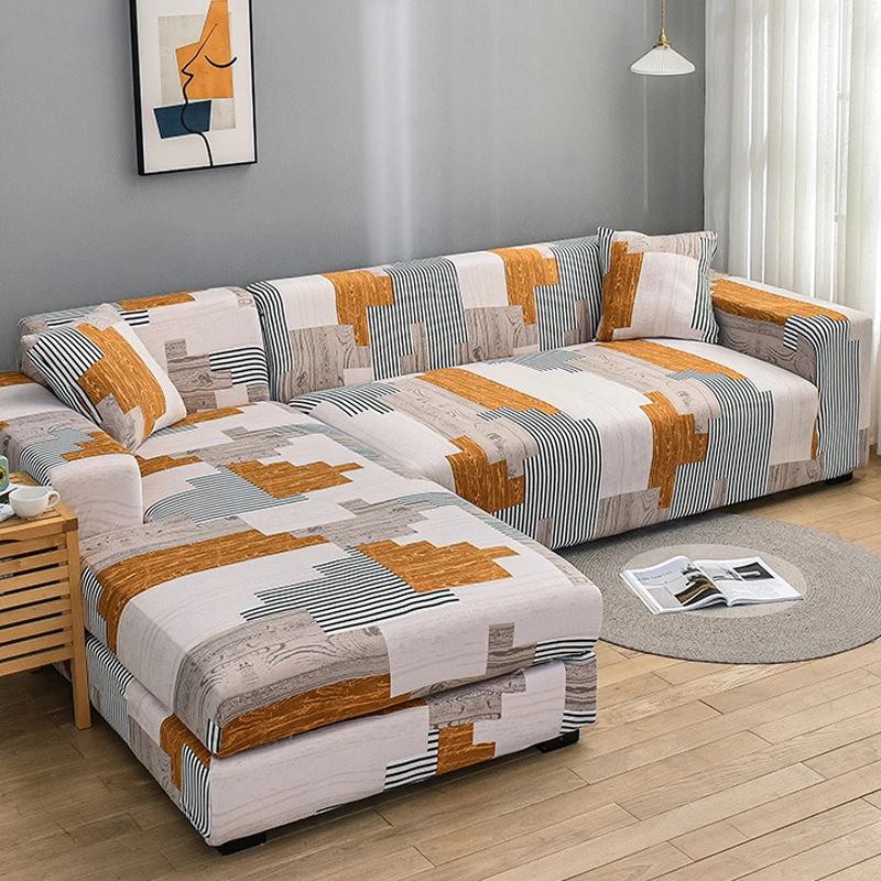 Эластичный чехол для дивана с геометрическим рисунком для гостиной, 1234-местного растягивающегося углового дивана L-образной формы, чехол для секционного кресла, покрывало для дивана