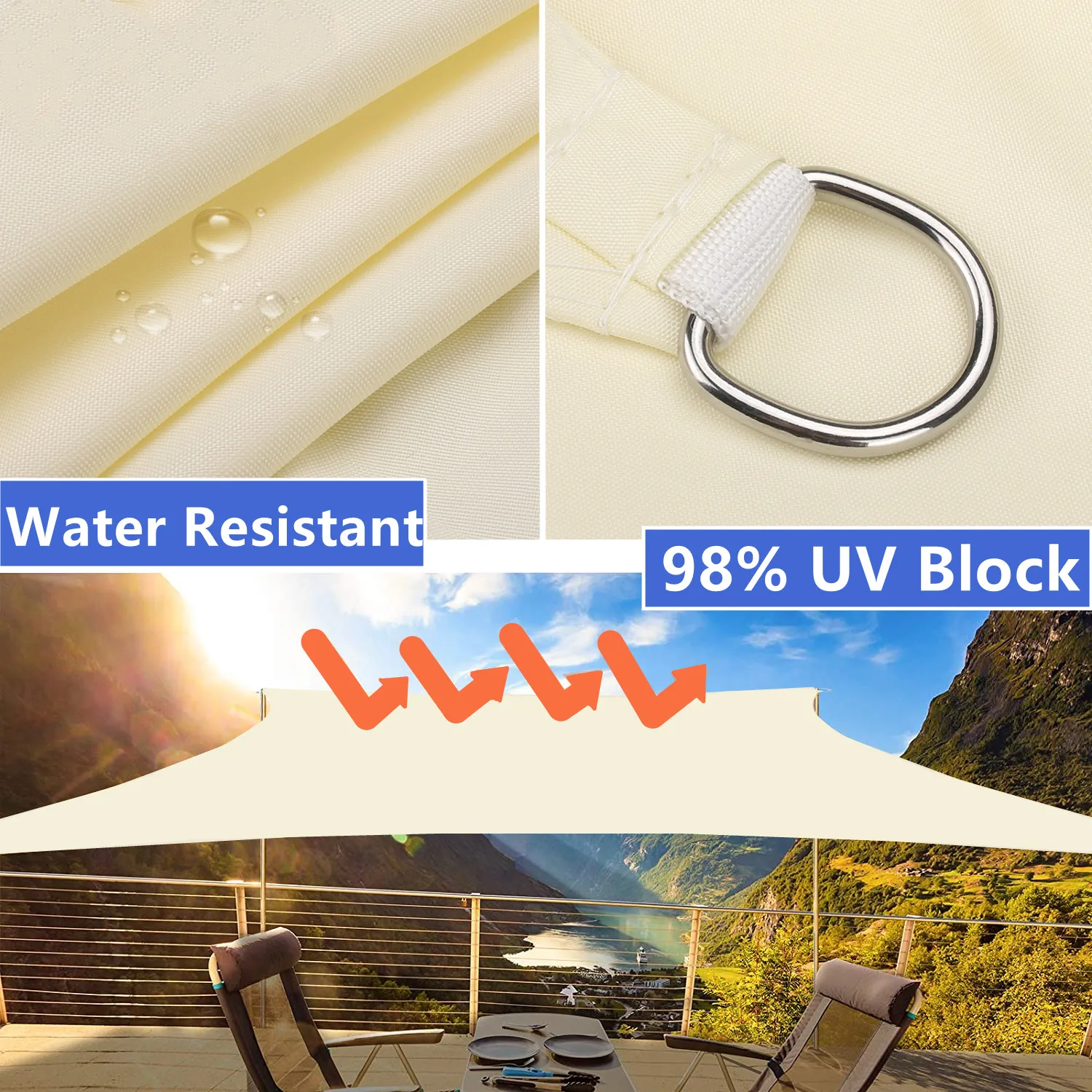 Чувствуйте себя комфортно в жаркие дниКозырек от солнца может принести ваши открытые пространства совершенно другой опыт в жаркие летние дни. Вместо того, чтобы скрываться в течение лучших частей дня, с нашим козырьком паруса вы можете провести время вне дверей, наслаждаясь прекрасной погодой. Теневое укрытие обеспечивает 95% УФ-блок. Тепло и блики значительно уменьшаются, поэтому Паруса для теней могут сделать вас комфортными даже в самые жаркие дни.