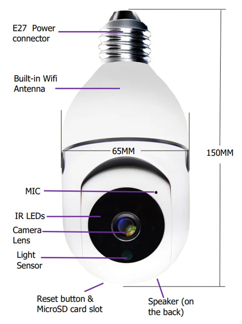Лампочка E27, Wi-Fi, PTZ, HD, инфракрасное ночное видение, двусторо...