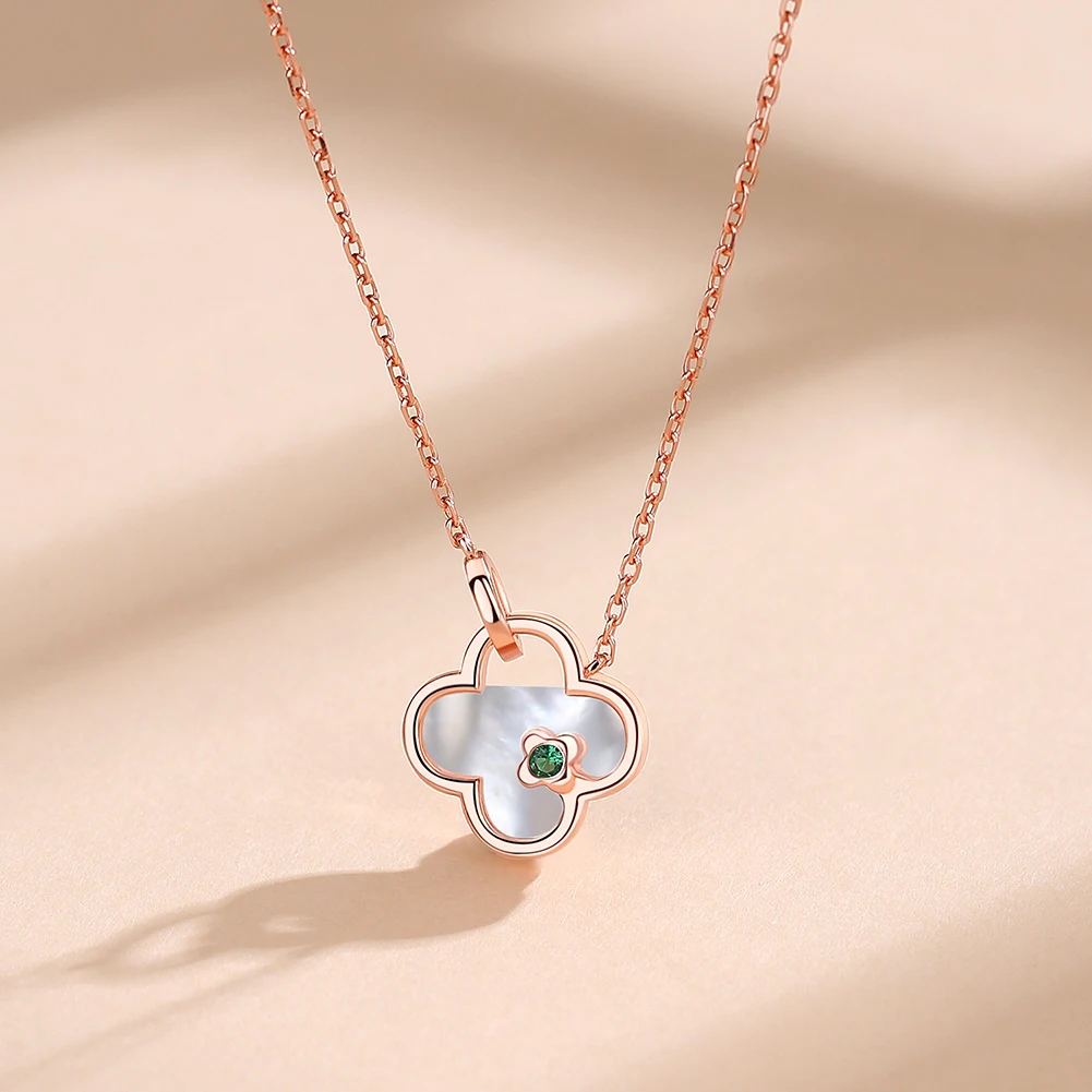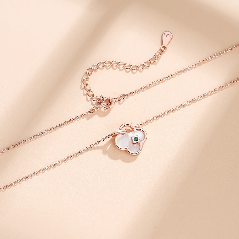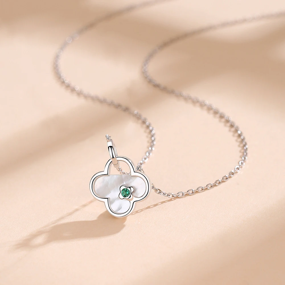 Ожерелье женское из серебра 925 пробы с натуральным клевером