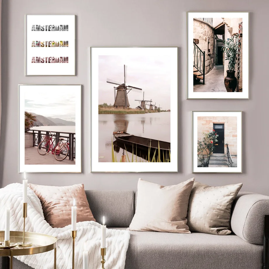 Розовый Париж башня подоконник цветок Автомобиль Велосипед скандина...
