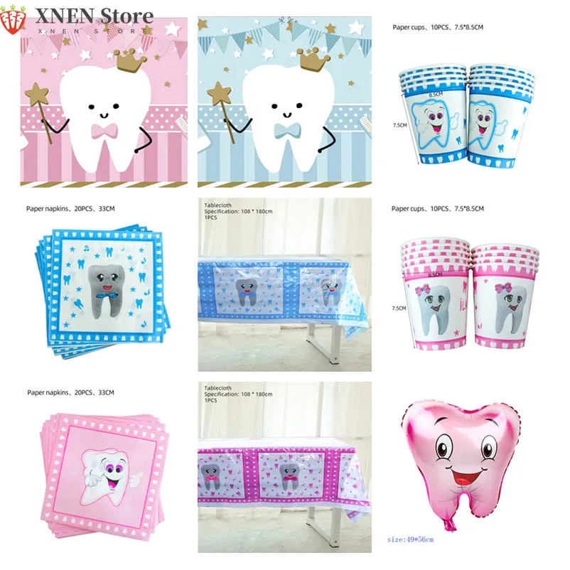 Одноразовая посуда First Tooth вечерние для мальчиков и девочек с рисунком зубов, бриллиантовые салфетки, товары для вечерние, украшение