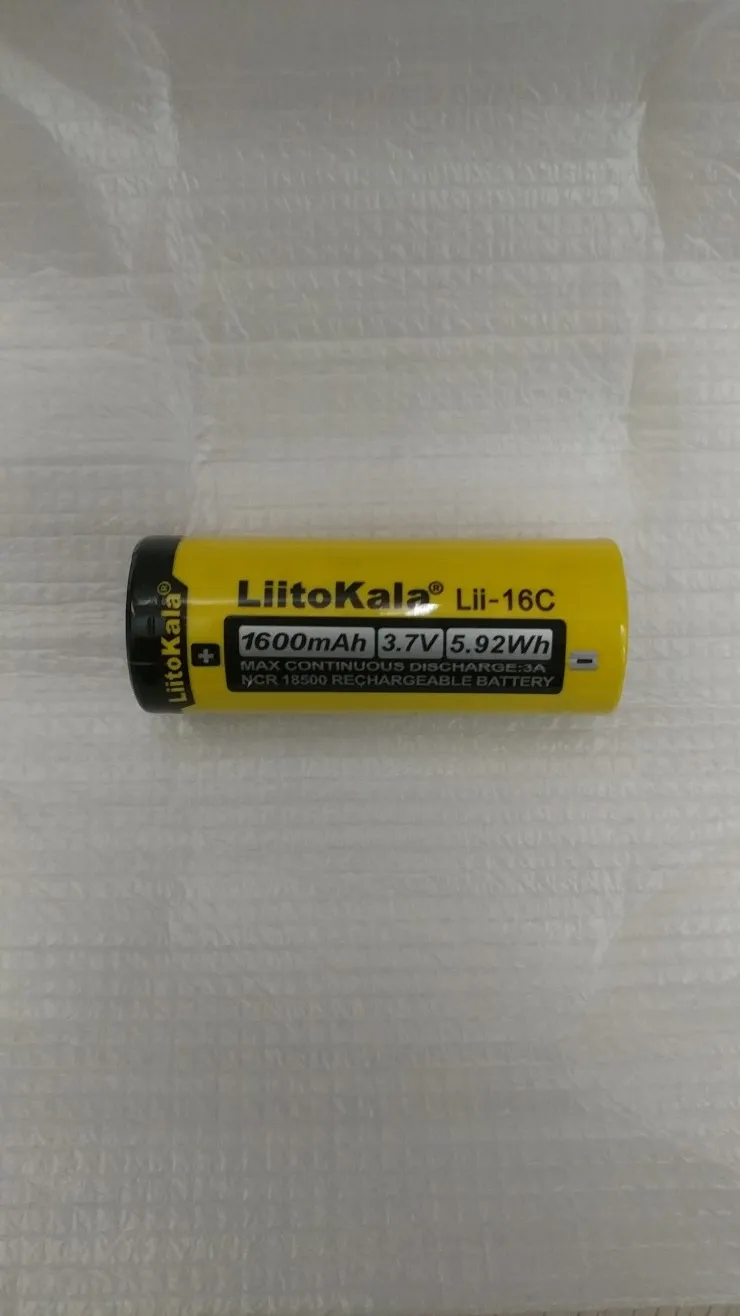 Бренд: LiitoKala Тип батареи: ICR 18500 3,7 V 1600mAh литий-ионный аккумулятор Модель: Lii-16C Напряжение: 3,7 V Для хранения напряжение: 3,7-3,9 V Предельное напряжение зарядки: 4,2 V. Емкость: 1600 мАч Размер: 18*50 ± 1 мм Защита: нет Верх батареи: плоский верх Материал: литий-ионный аккумулятор ICR Цикл зарядки: не менее 600 циклов Применение: светодиодный фонарь, фары, механические модули, фонари, фары, вейп, ecig и т. Д.