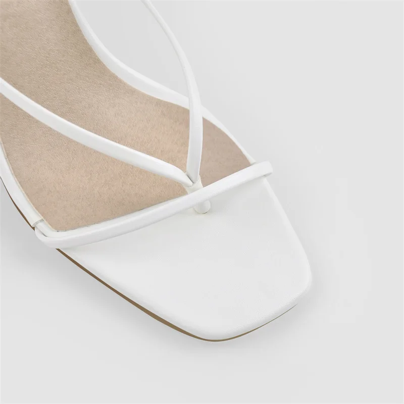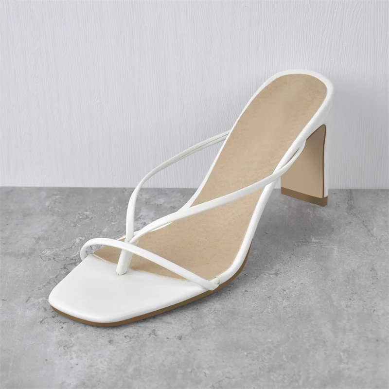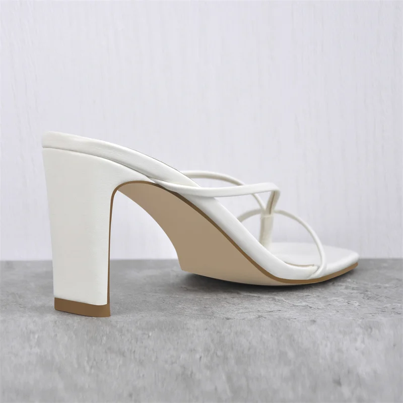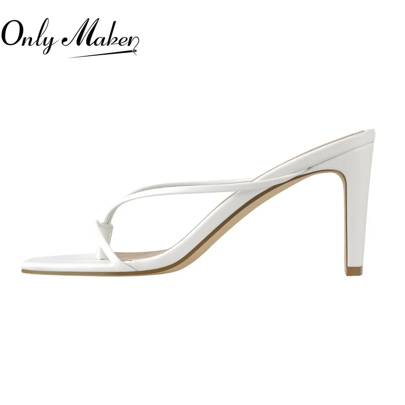 Шлепанцы Onlymaker без застежек, сандалии из искусственной кожи с узкими ремешками, квадратный каблук, повседневные удобные тапочки, белые, на лето