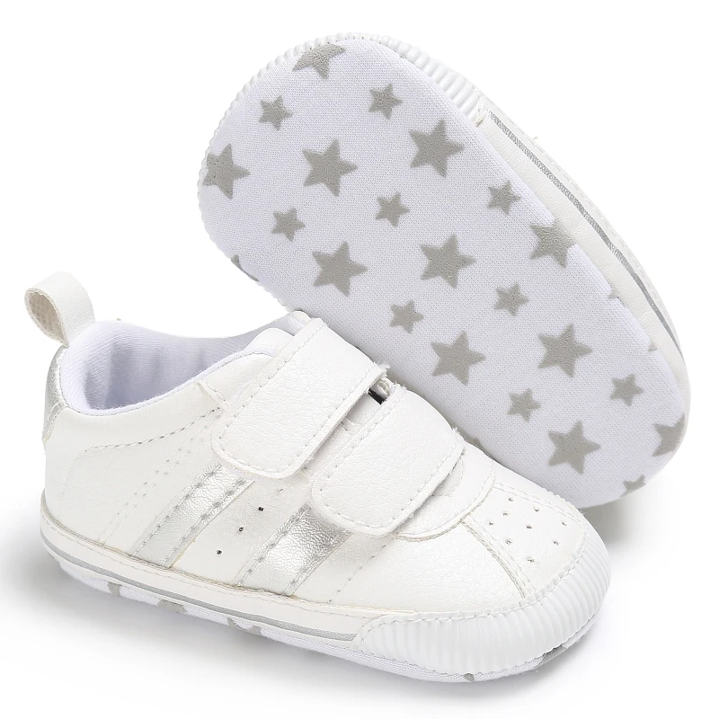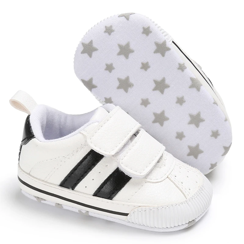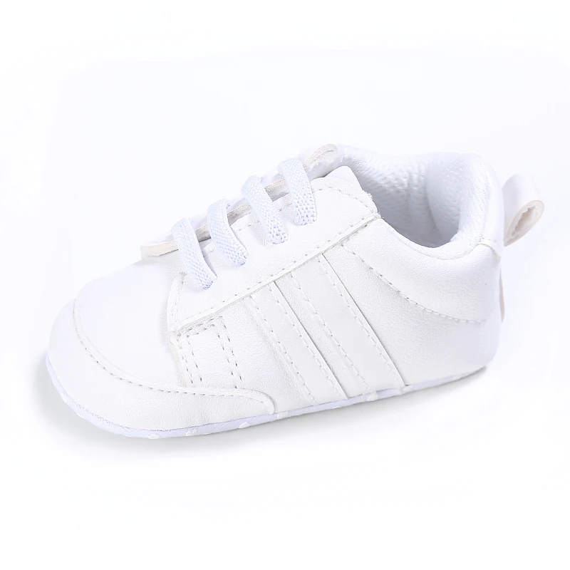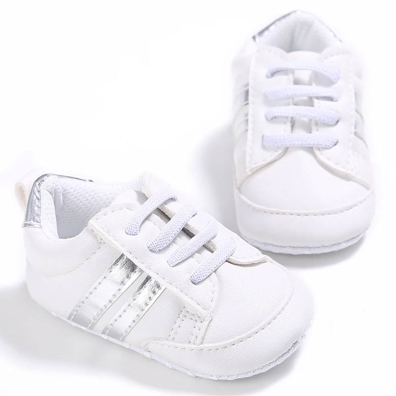 Туфли для новорожденных, классическая спортивная обувь из искусственной кожи на мягкой подошве для мальчиков и девочек, мокасины для первых шагов, повседневные кроссовки