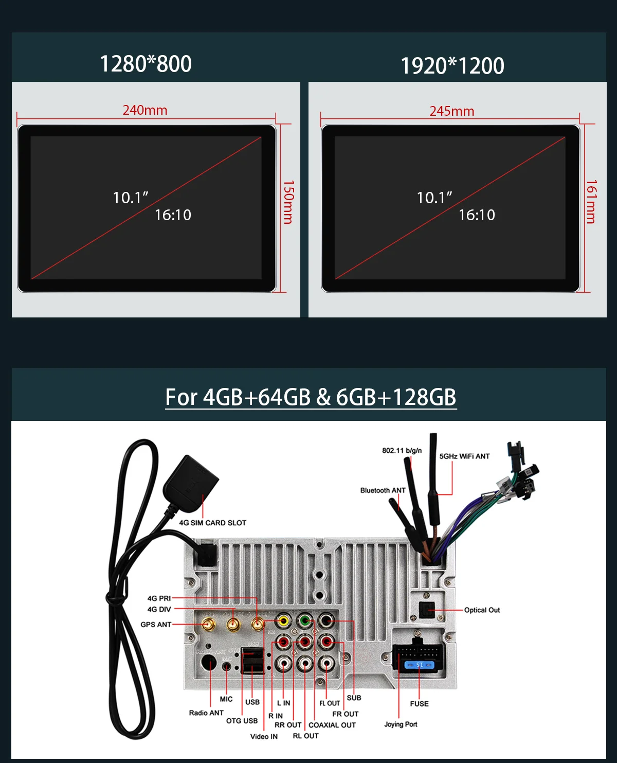Автомобильная магнитола JOYING, универсальная мультимедийная стерео-система на Android, с видеорегистратором, экран 10 дюймов, 4G
