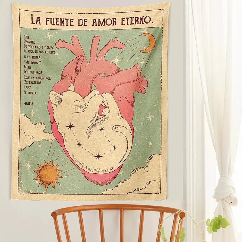 Таро, кошка, гобелен, ведро, солнце, луна, вечное сердце, Настенная подвеска, рандомный домашний хиппи матрас для девочек, декор для спальни