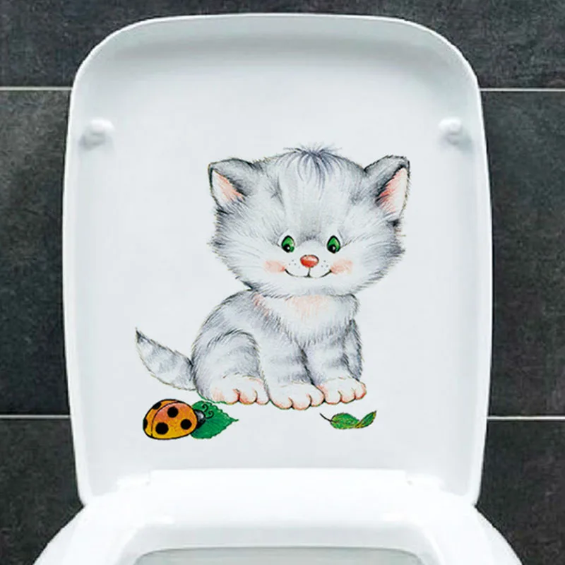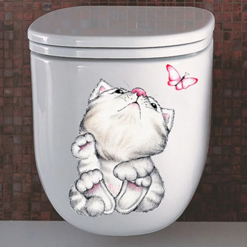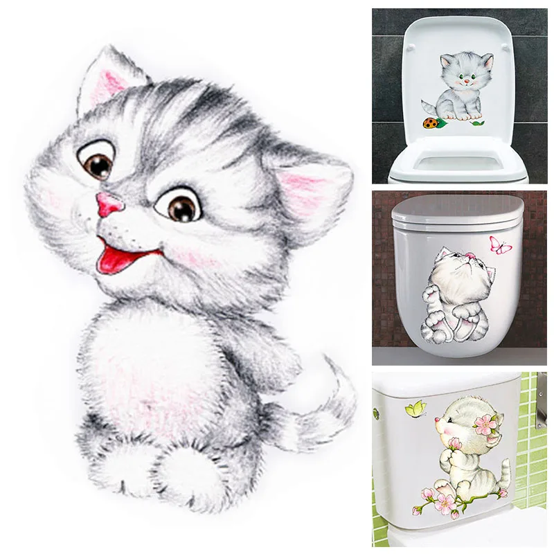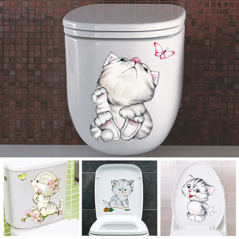 Стикеры с милым котом, декоративные Стикеры для туалета с кошками, постер для туалета, крышка для унитаза, аксессуары для унитаза, украшение для унитаза