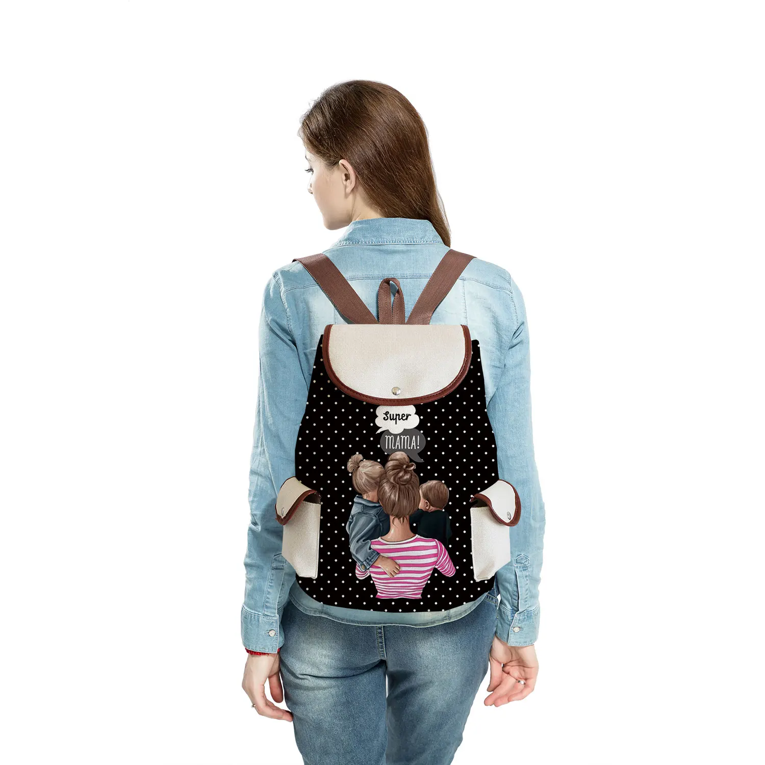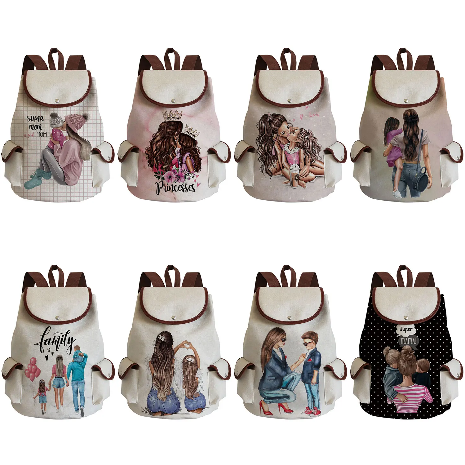 Сумка для книг для девочек-подростков, графический ранец для мамы и ребенка, рюкзак с мультипликационным принтом Super Mama, вместительные повседневные женские сумки на шнурке